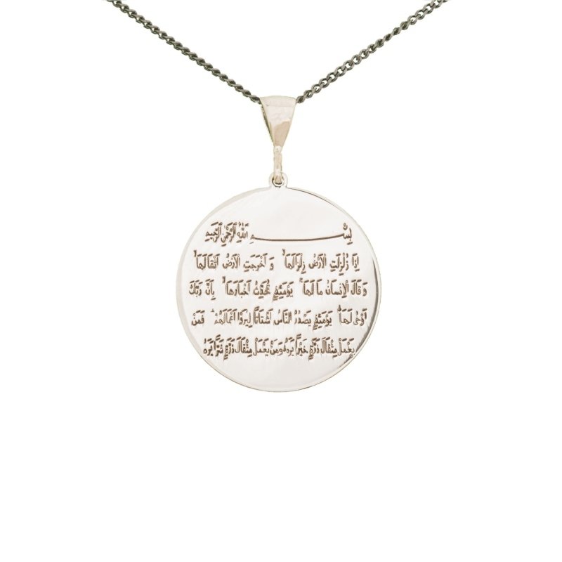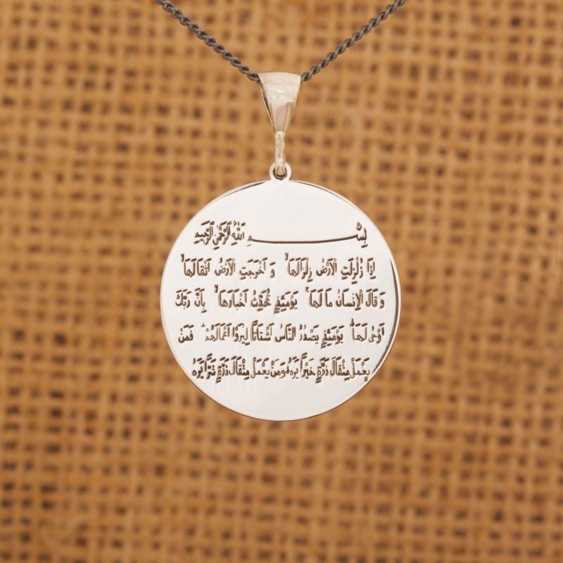 Bu sure tamamıyla Medine devrinde indirildiğine inanılan, ismini içinde geçen zelzele isminden alır ki Türkçede deprem, sarsıntı anlamlarına gelir. Kolye, 925 ayar gümüş ve kendi atölyemizin işçiliği ile hazırlanmıştır. Sipariş verildikten sonra 1-2 iş günü içerisinde kargoya verilir.