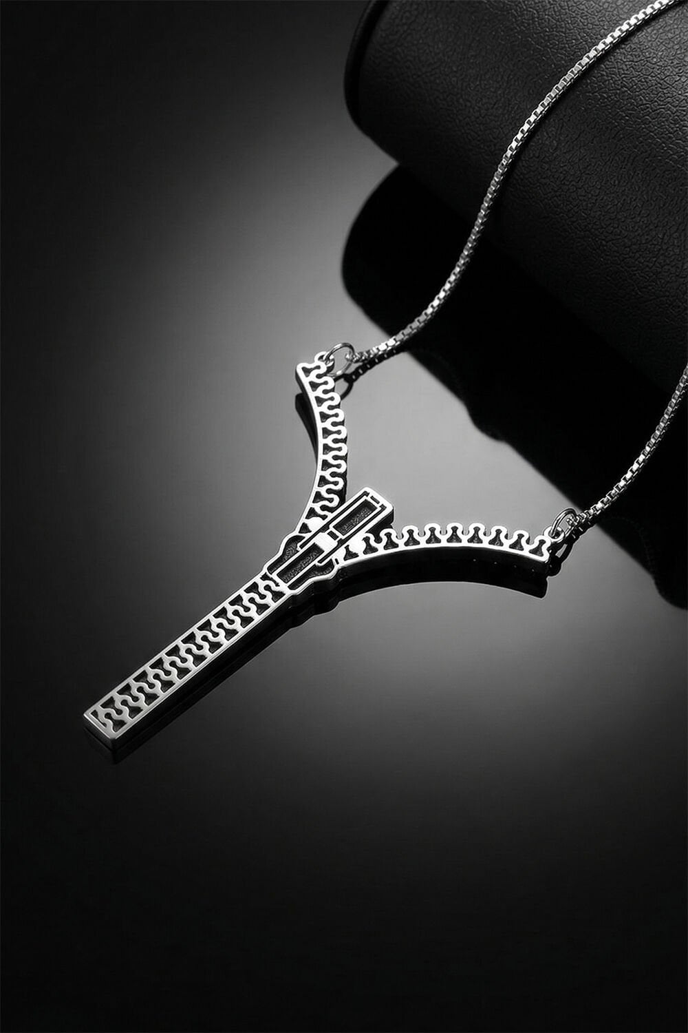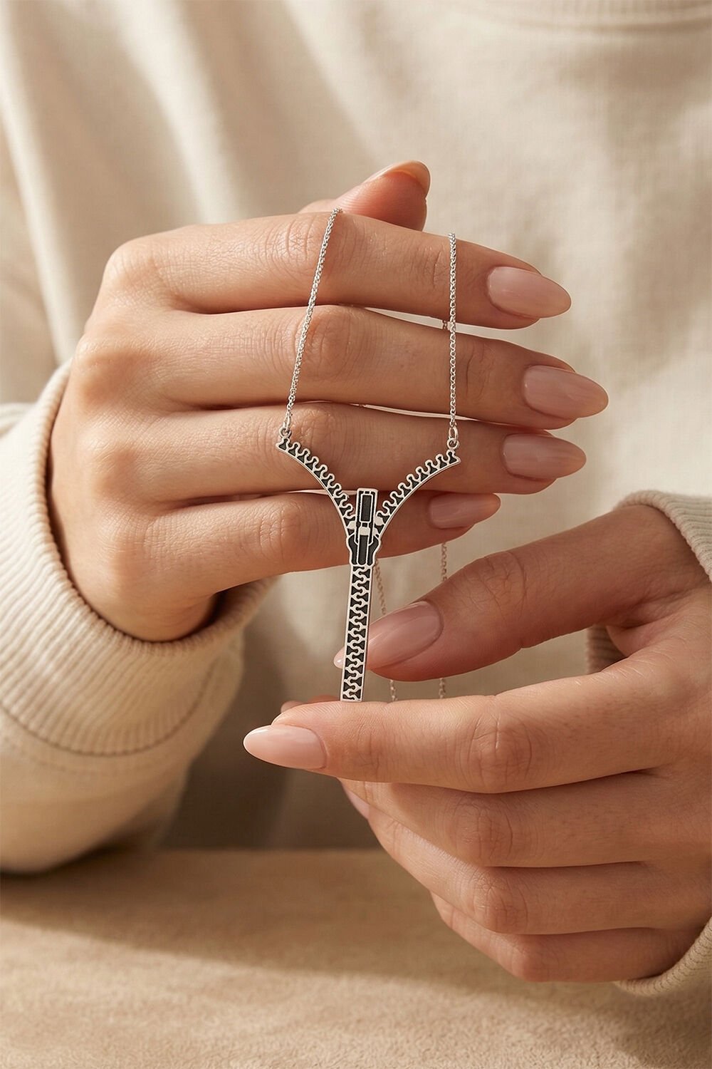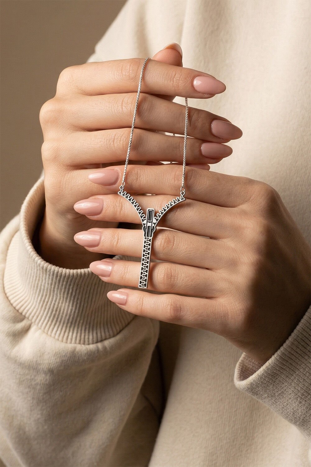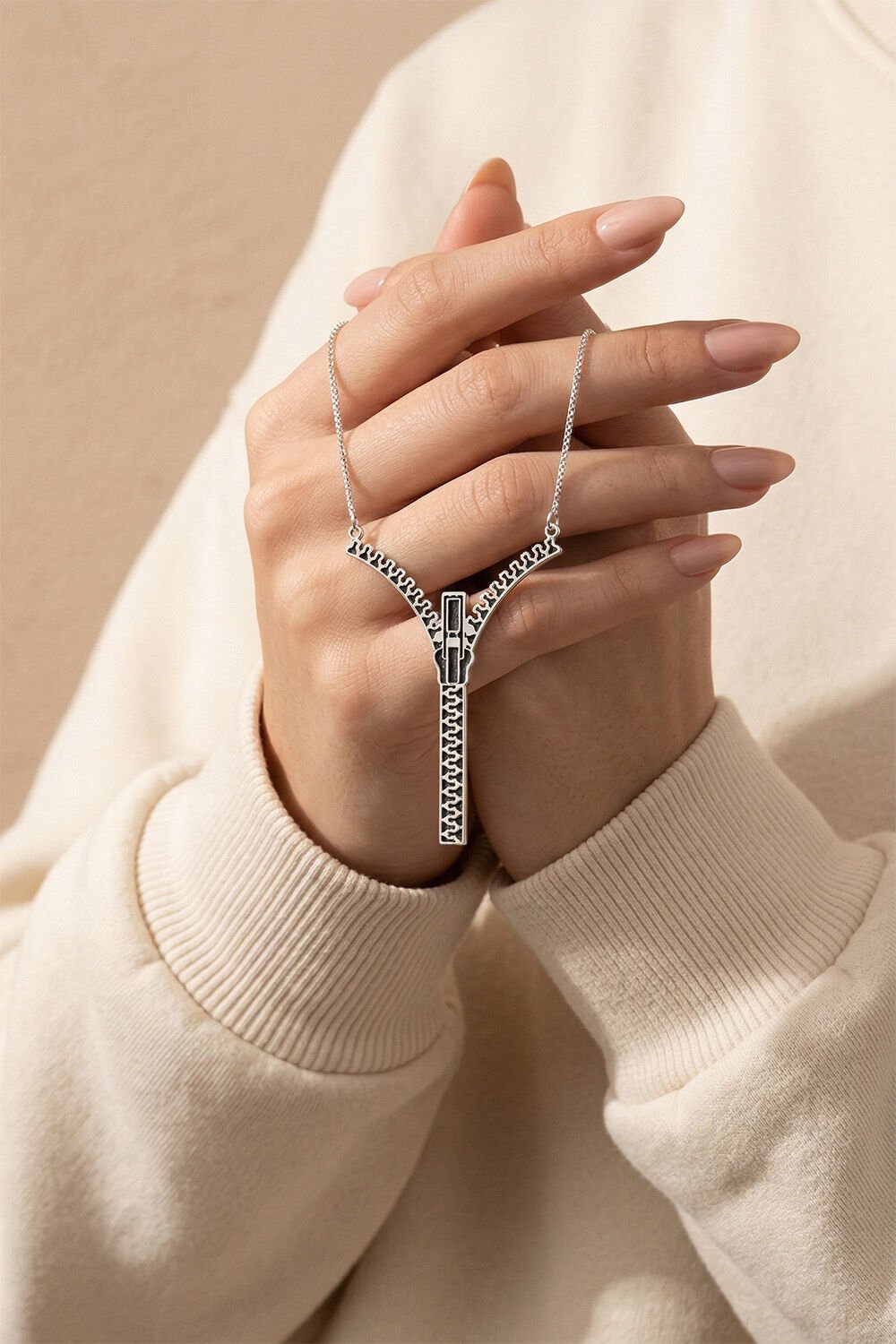 925 Ayar Gümüş Fermuar Model Unisex Kolye – Modern ve Özgün Tasarım