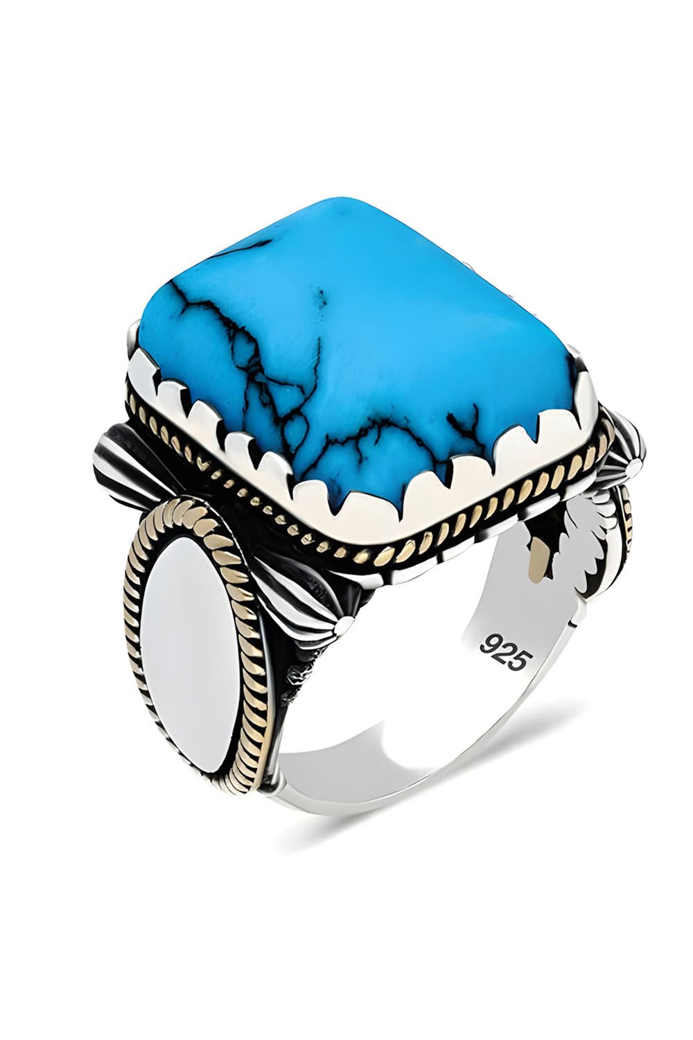 Natural Firuze Taşlı El İşçiliği Erkek Yüzük