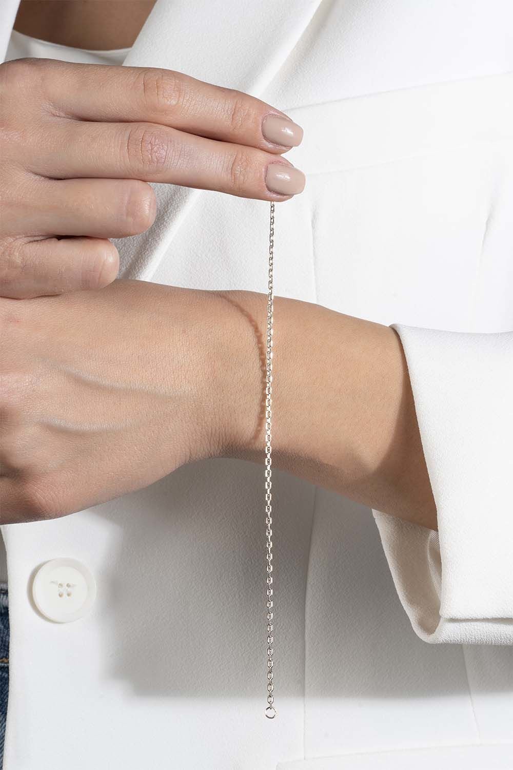 Farklı renklerde (silver, gold, rose) hazırlayabildiğimiz, klasik desenlere sahip gümüş zincir bileklik modelimiz. Bileklik, 925 ayar gümüş ile imal edilmiştir. Sipariş verildikten sonra 1-2 iş günü içerisinde kargoya verilir.