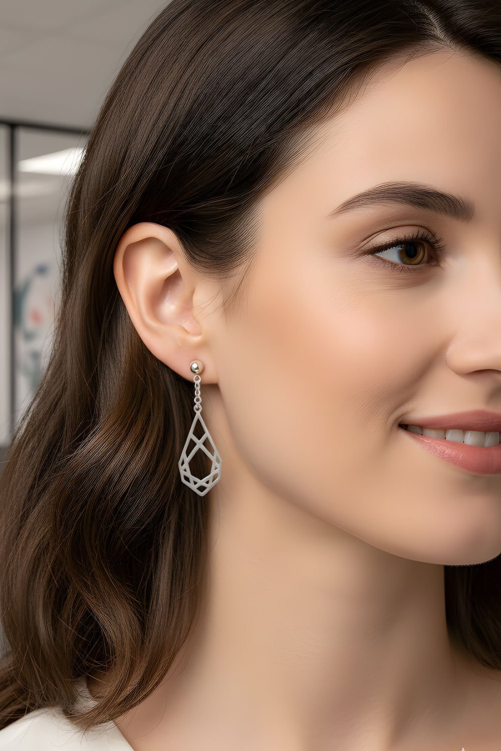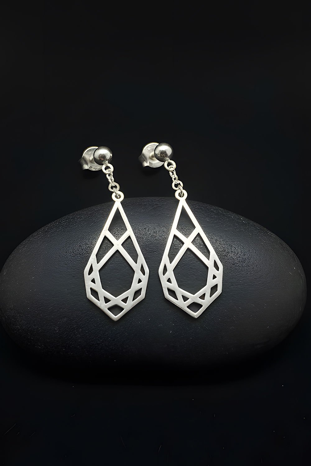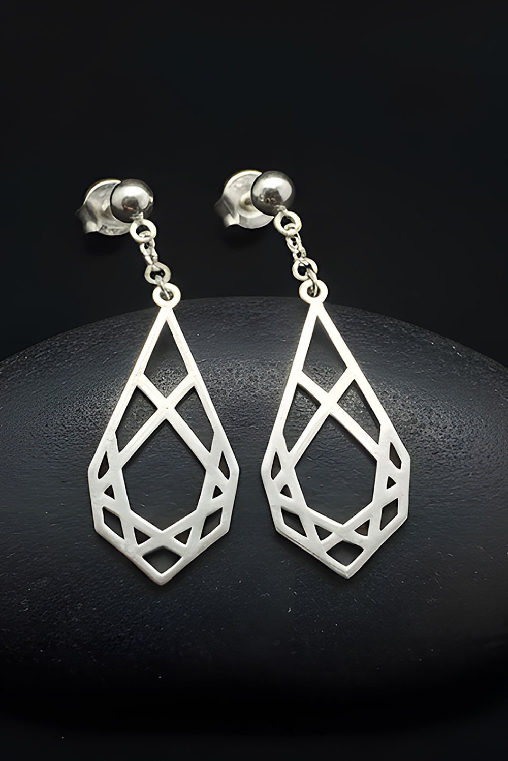 Geometrik Desenli Sallantılı Gümüş Küpe |