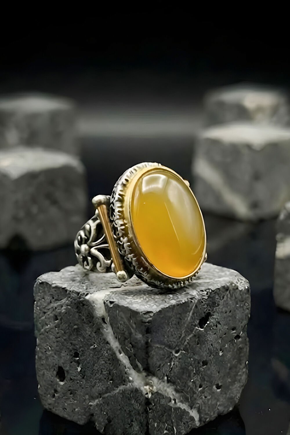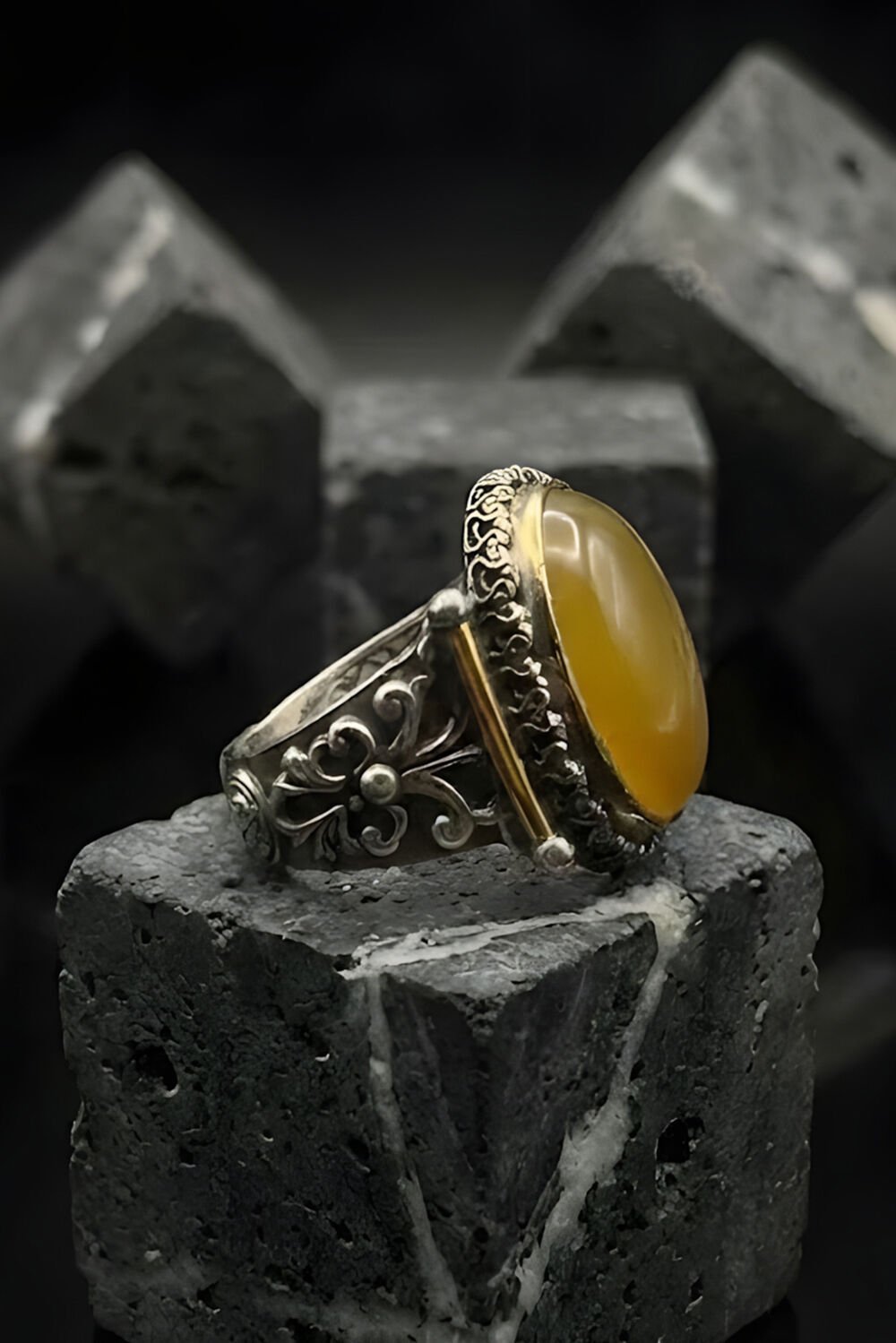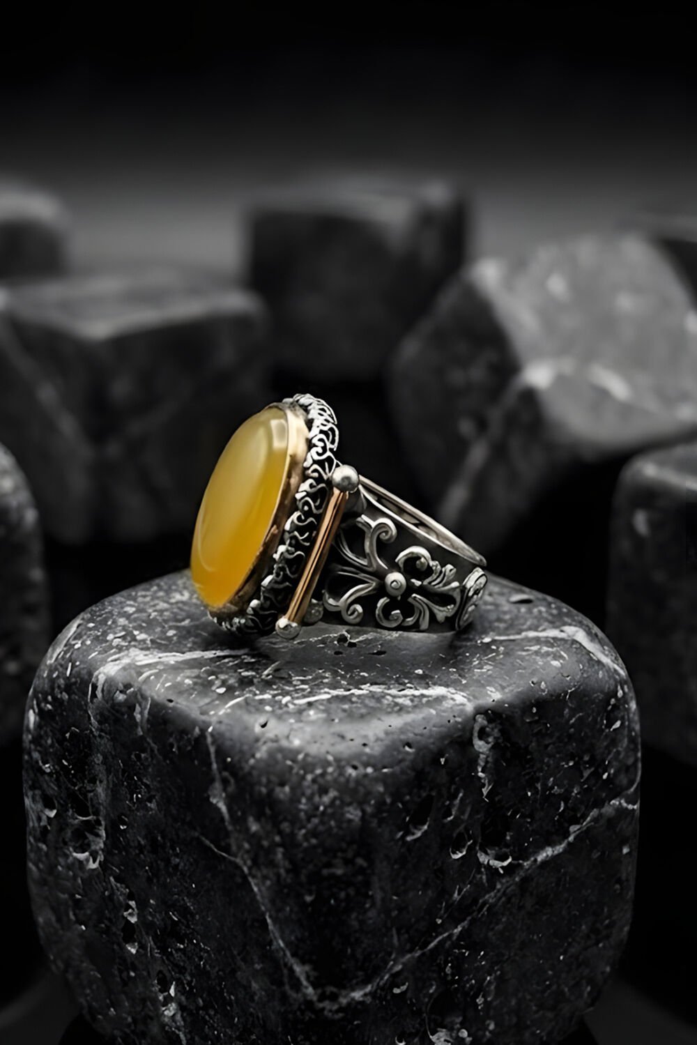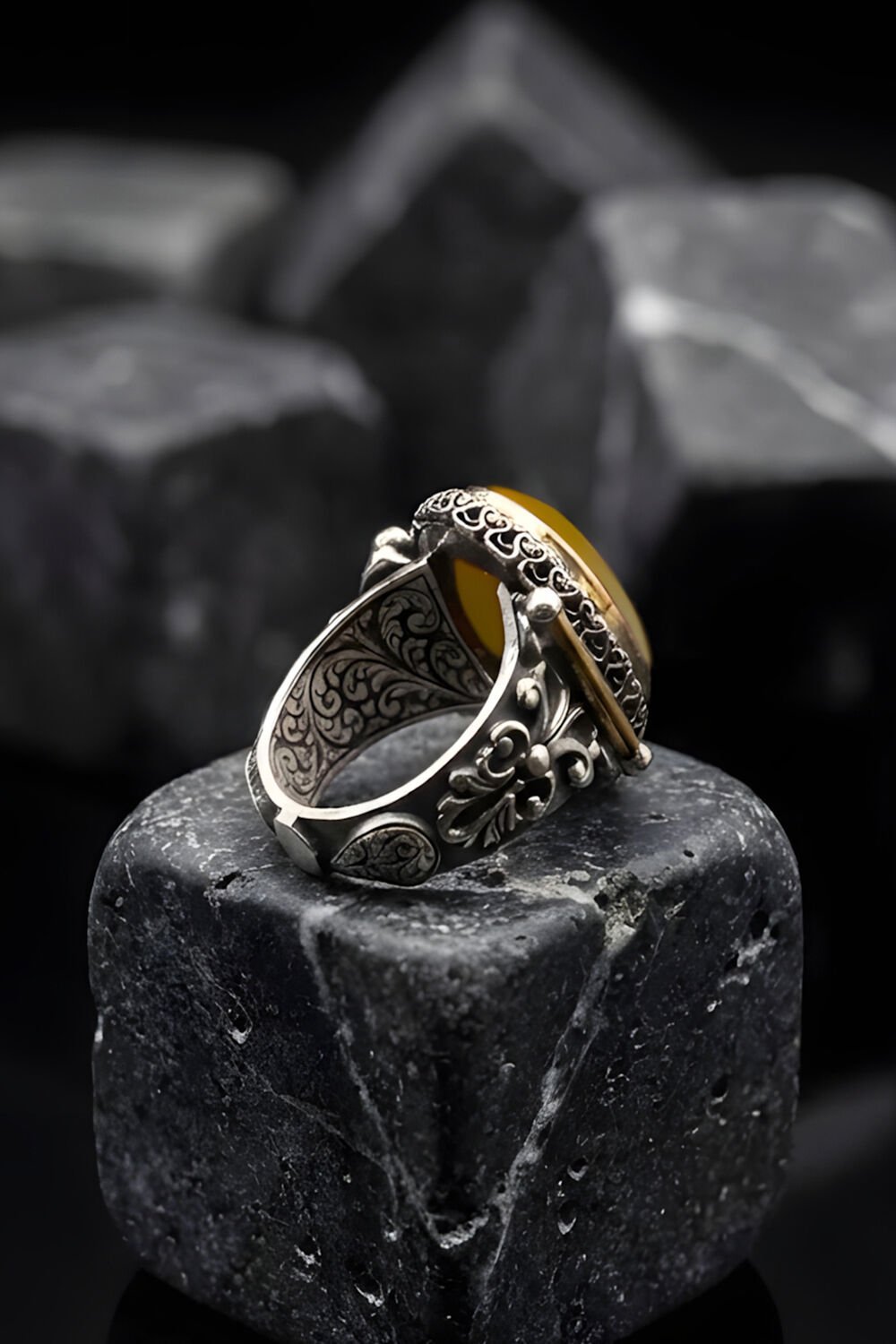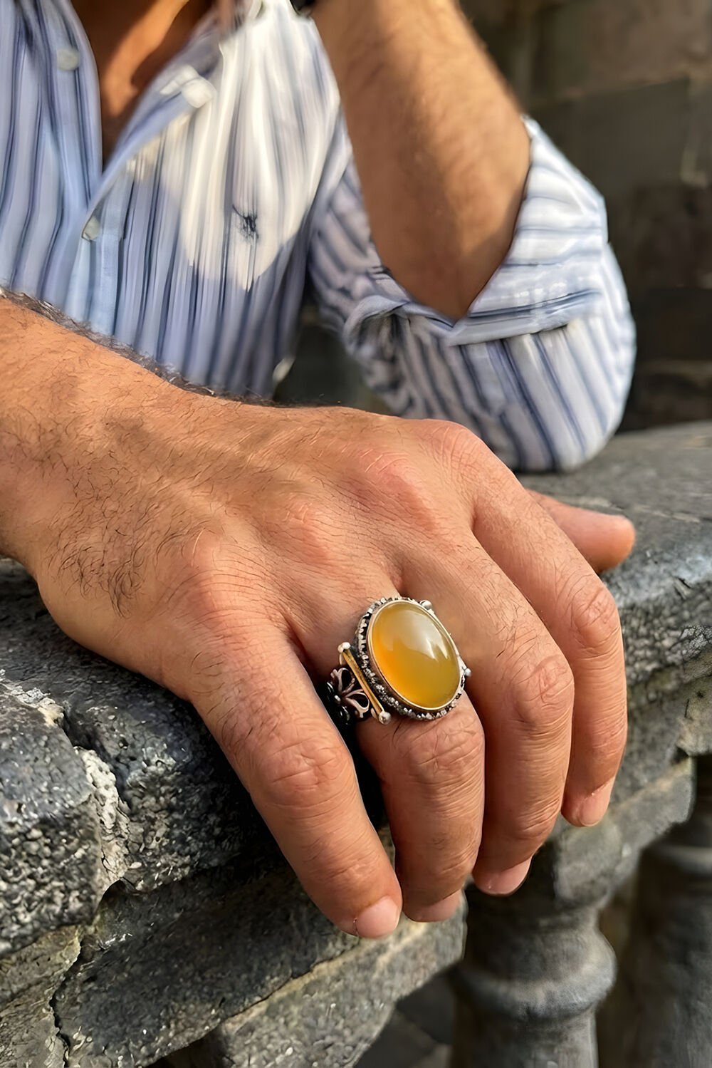 Tarzında karakter ve güç arayan erkekler için özel olarak tasarlanan Görkem Model Sarı Akik Taşlı Gümüş Erkek Yüzük, geleneksel sanatı modern bir estetikle buluşturuyor. Tamamen el işçiliği ile hayat bulan bu özel tasarım, parmağınızda sadece bir aksesuar değil, bir sanat eseri taşımanızı sağlıyor.