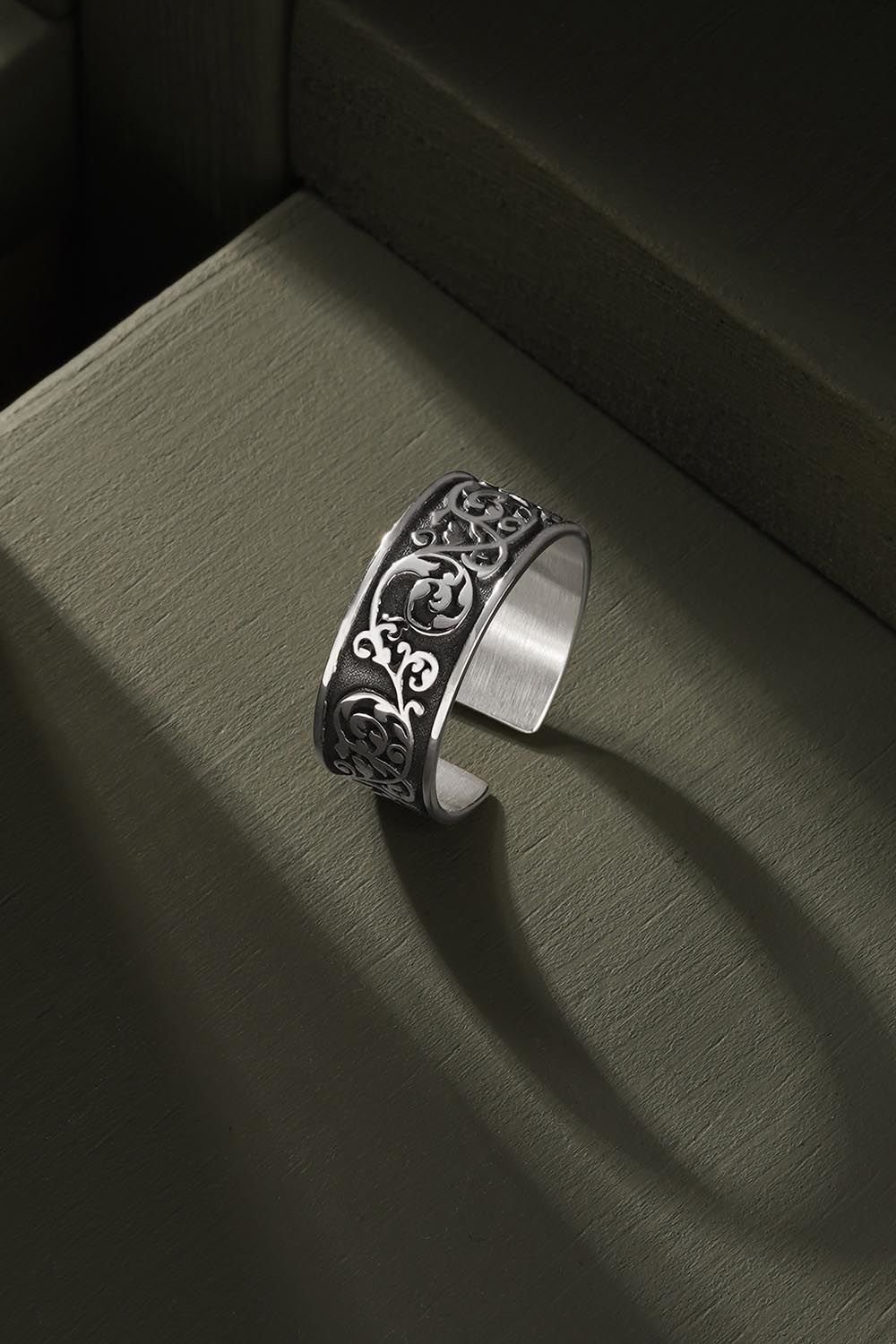 Gravür Desenli 925 Ayar Gümüş Ayarlanabilir Yüzük
