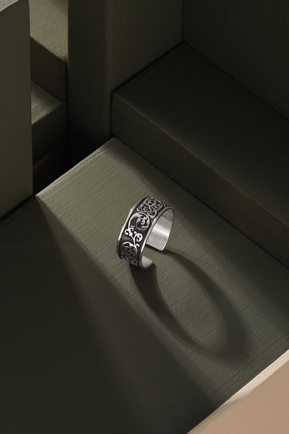 Gravür Desenli Ayarlanabilir Gümüş Yüzük
