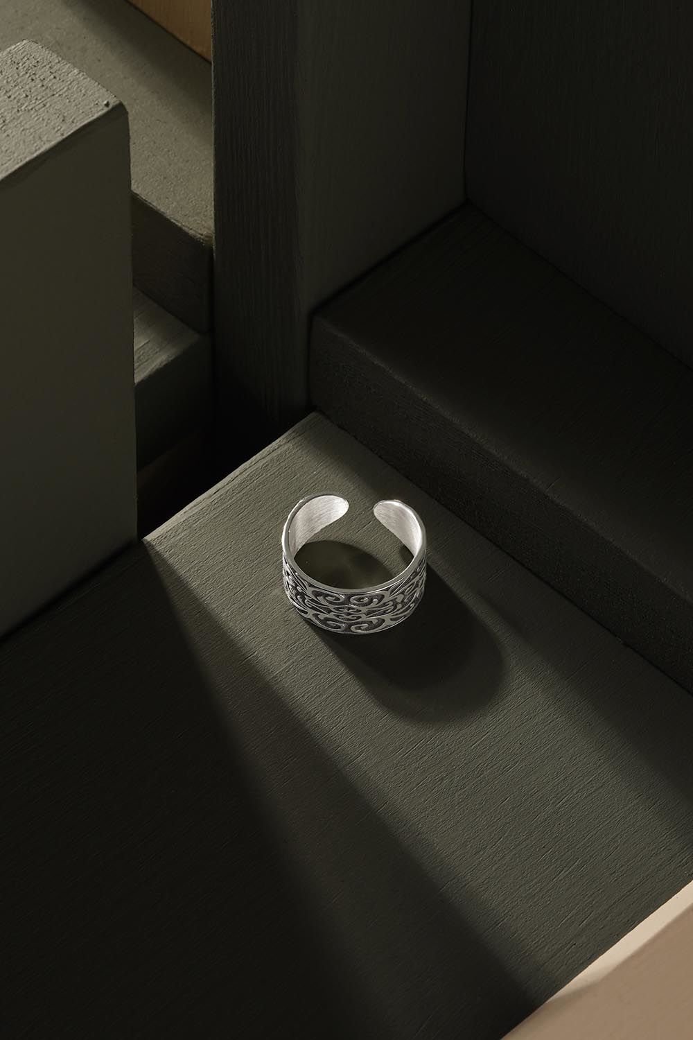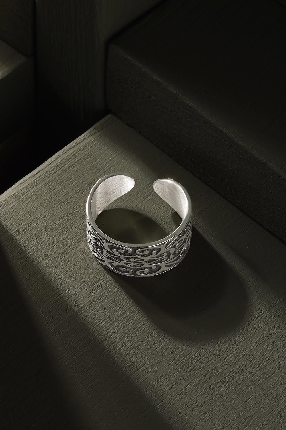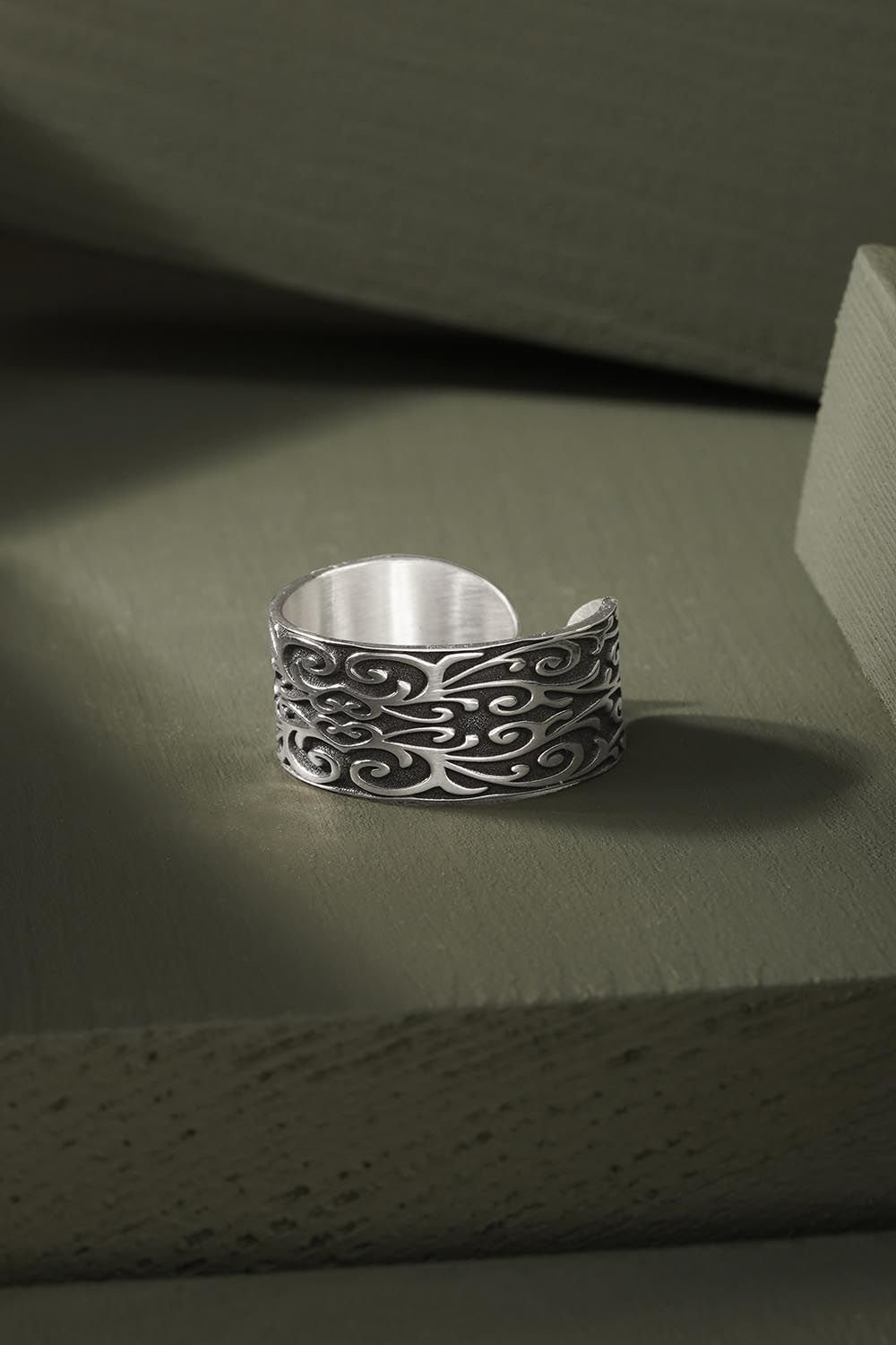Gravür İşleme Model Ayarlanabilir Gümüş Yüzük