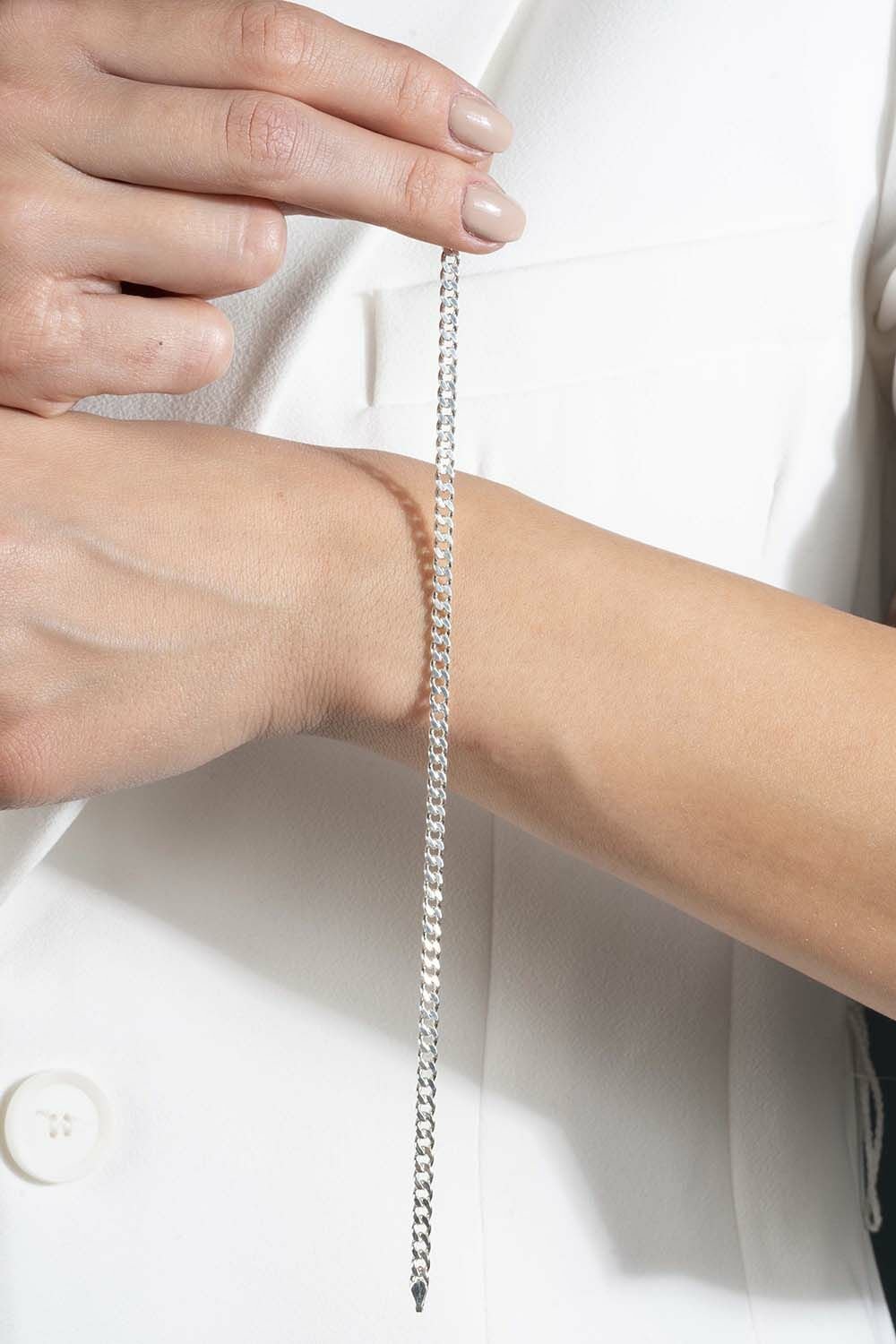 Farklı renklerde (silver, gold, rose) hazırlayabildiğimiz, klasik desenlere sahip gümüş zincir bileklik modelimiz. Bileklik, 925 ayar gümüş ile imal edilmiştir. Sipariş verildikten sonra 1-2 iş günü içerisinde kargoya verilir.
