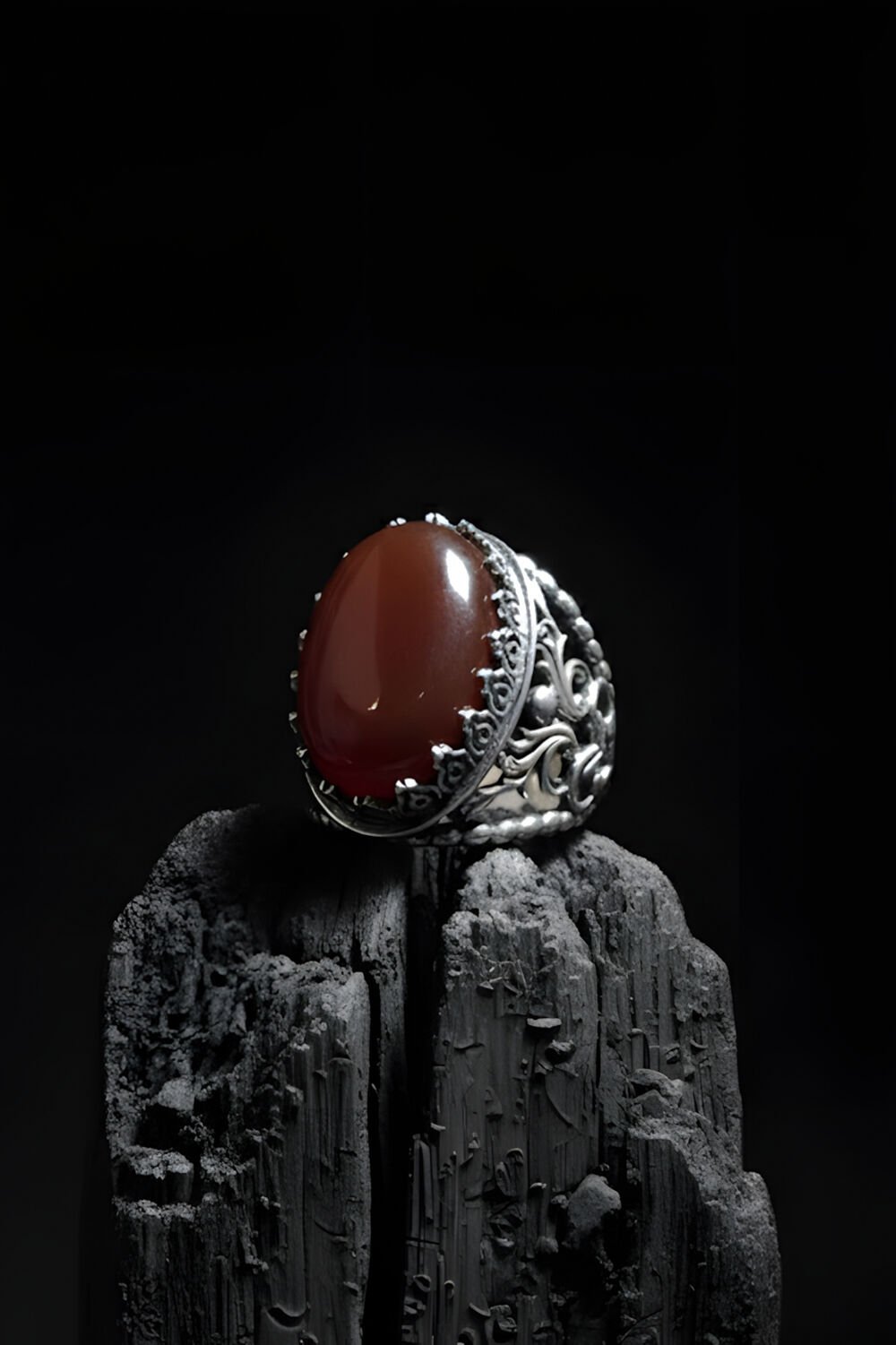 Har-ı Aşk Model El İşi Akik Taşlı Gümüş Yüzük