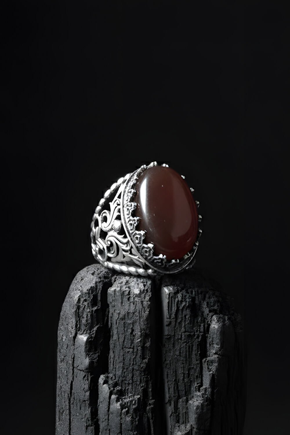 Har-ı Aşk Serisi: El İşçiliği Akik Taşlı 925 Ayar Gümüş Erkek Yüzük