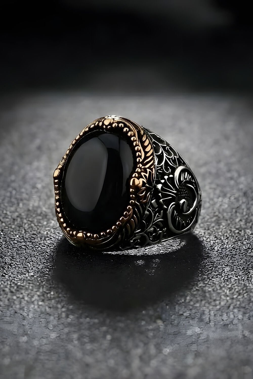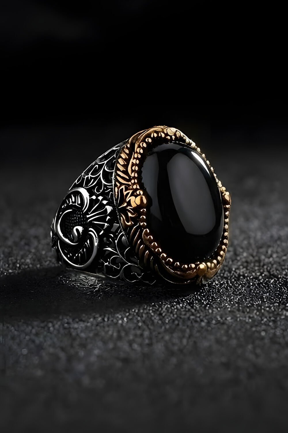 Hünkar Model Oniks Taşlı Gümüş Erkek Yüzük