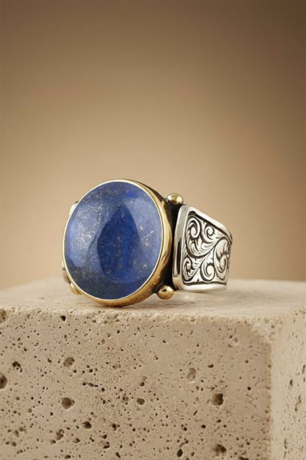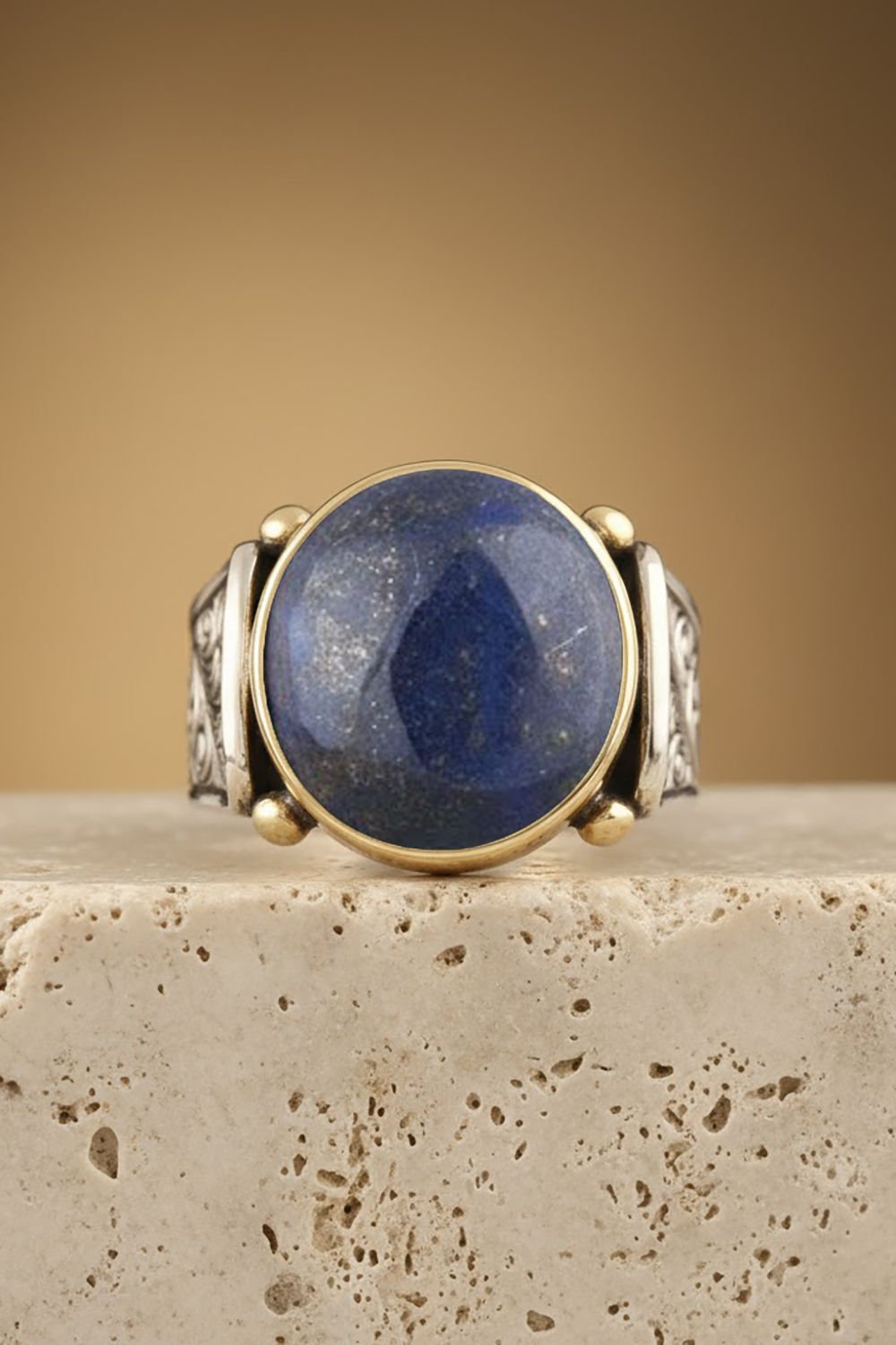 Hakiki ve orijinal doğal taşlar kullandığımız yüzüklerin bu modelinde Lapis Lazuli taşını kullanıyoruz.