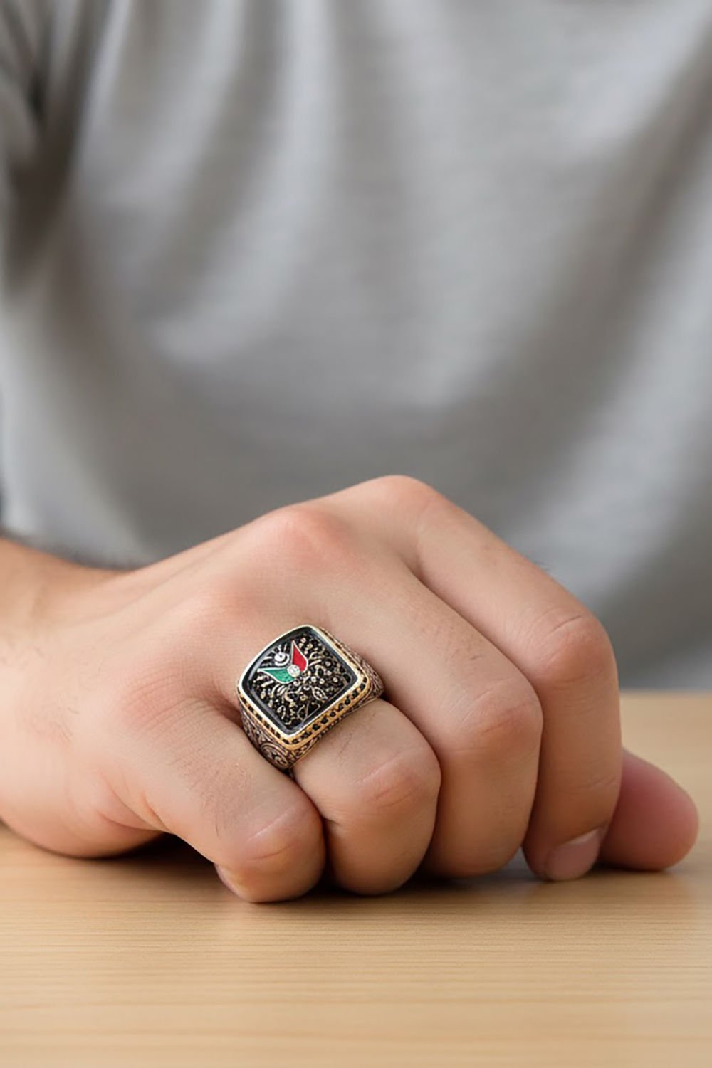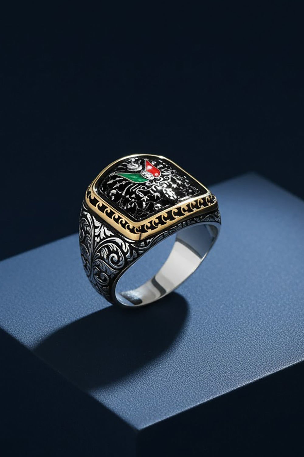 Kalem İşlemeli Devlet Arması Model Taşsız Yüzük |