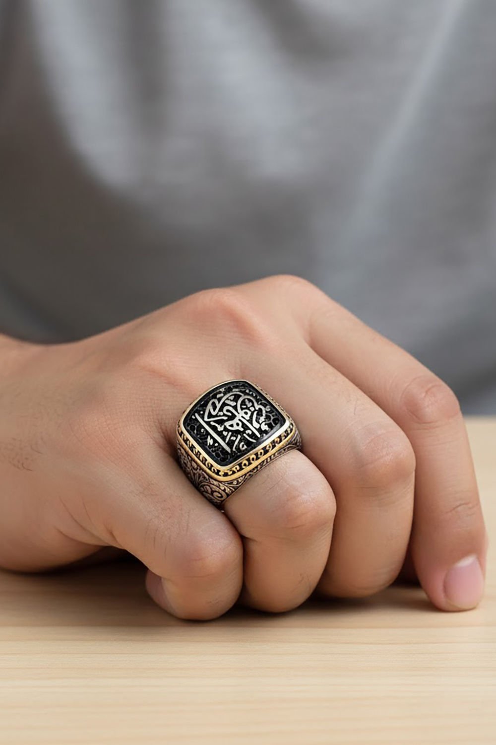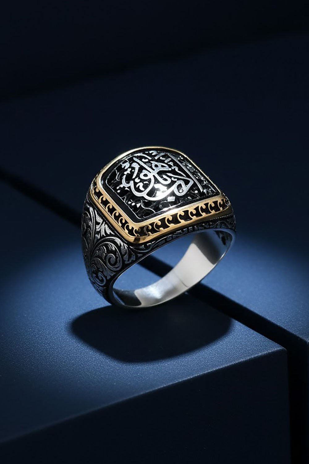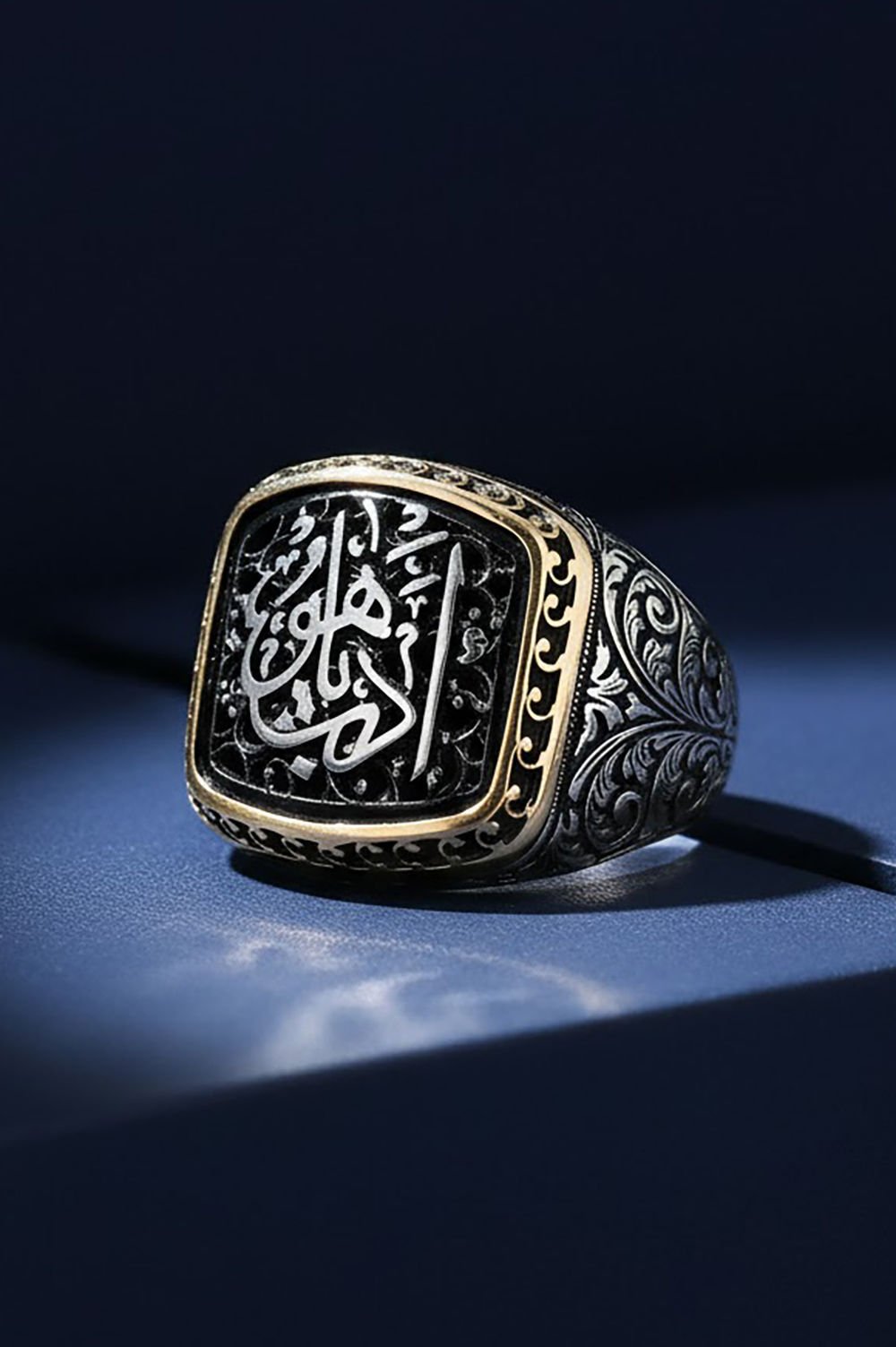 Yüzük üzerinde hat sanatı ile yazılmış ''Edep Ya Hu'' yazısı bulunmaktadır.