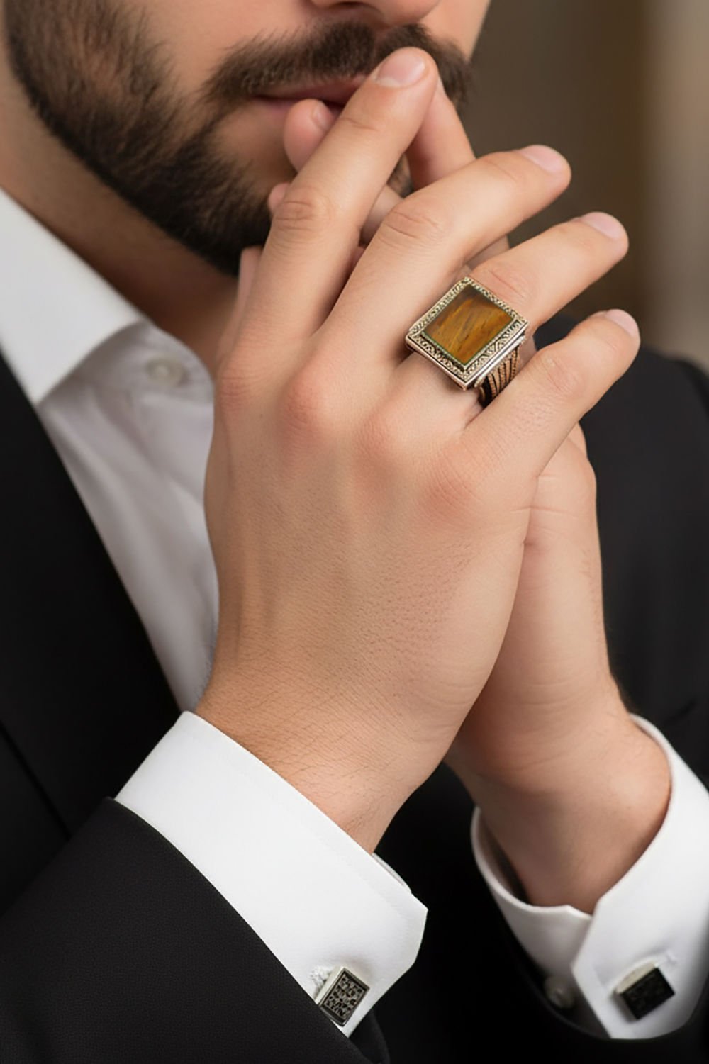 Gümüş Taşlı Erkek Yüzük |