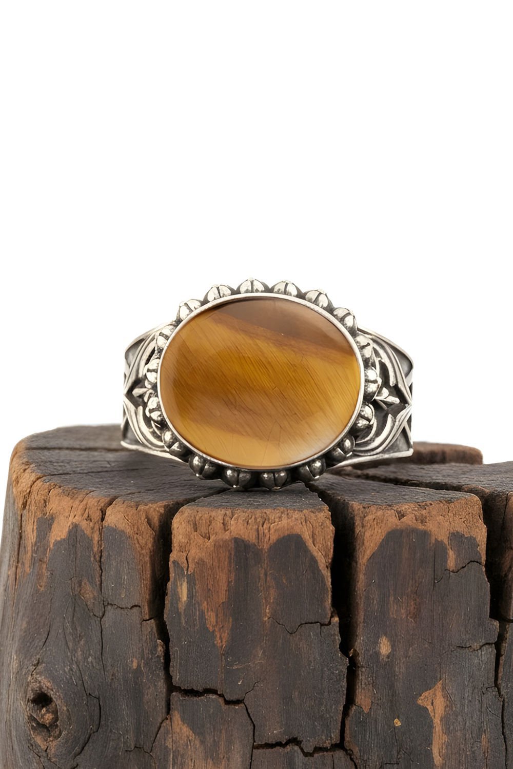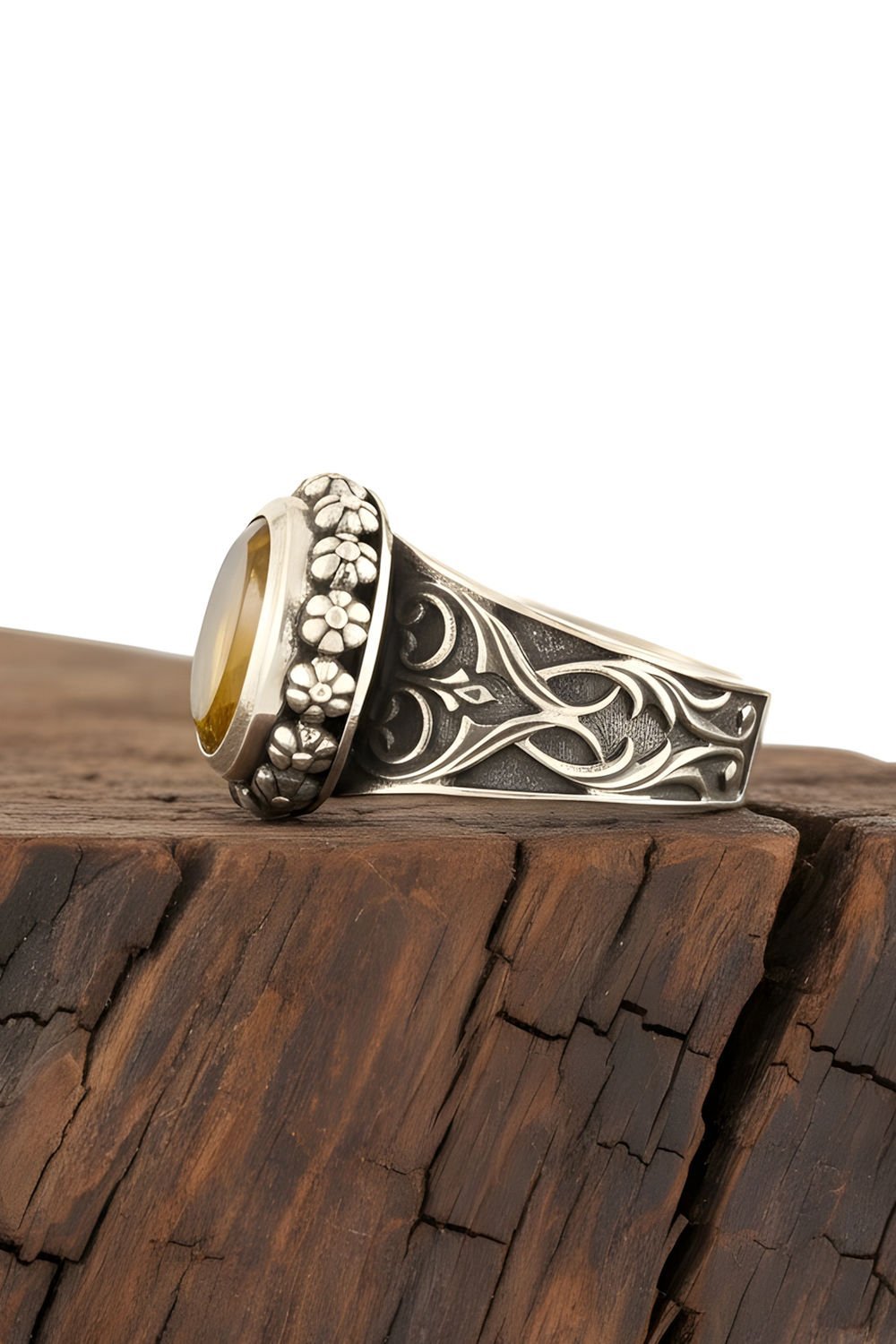 Natural Kaplangözü Taşlı Usta El İşçiliği ve Gümüş Erkek Yüzük: Güç ve Zarafet Parmaklarınızda