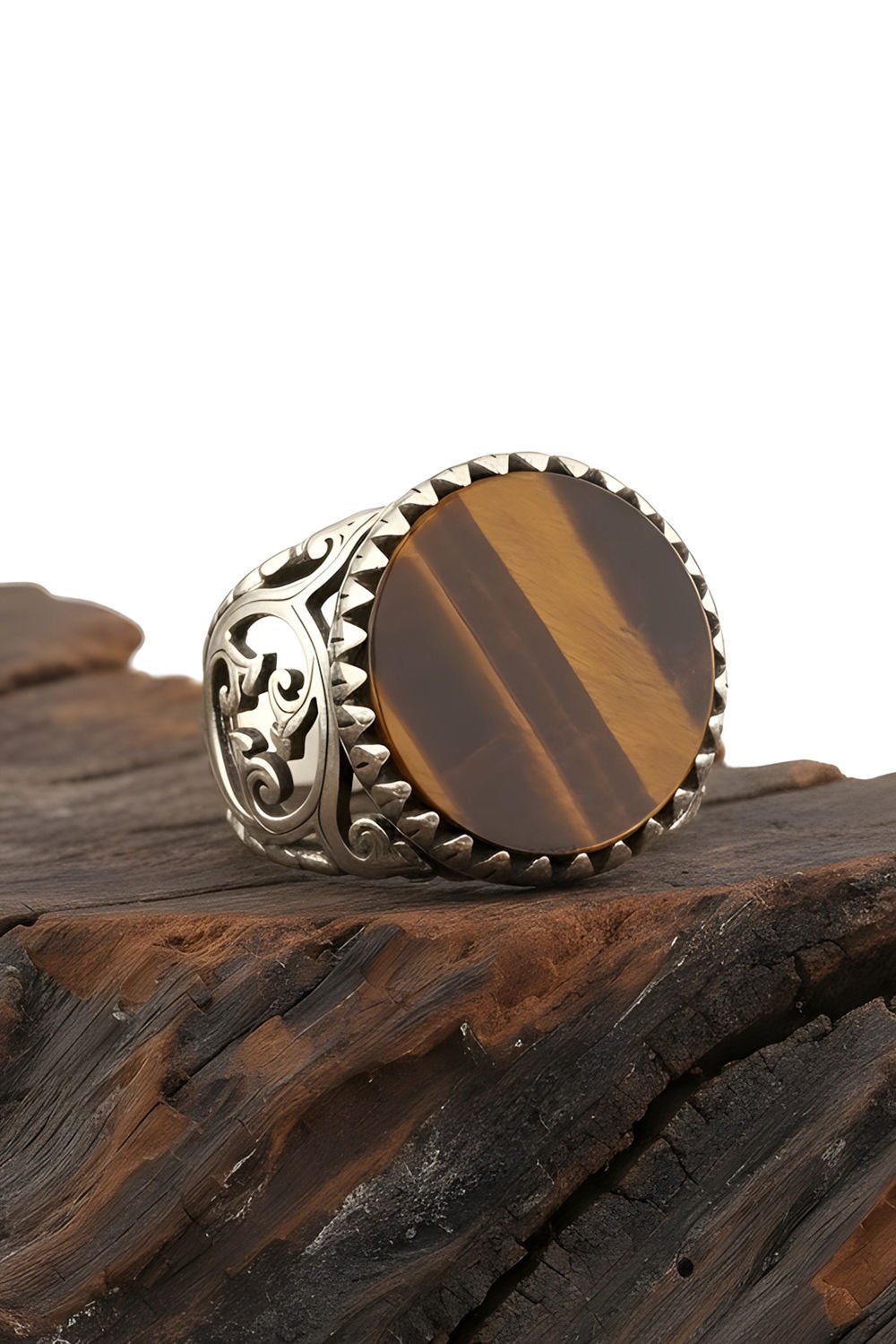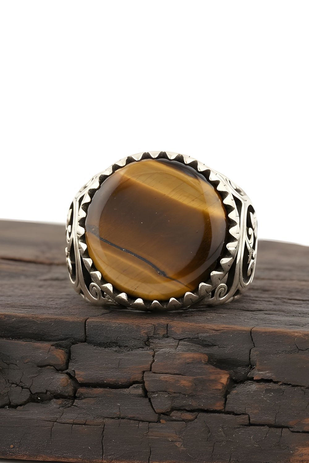 Zarif Doğal Kaplangözü Taşlı Erkek Yüzük