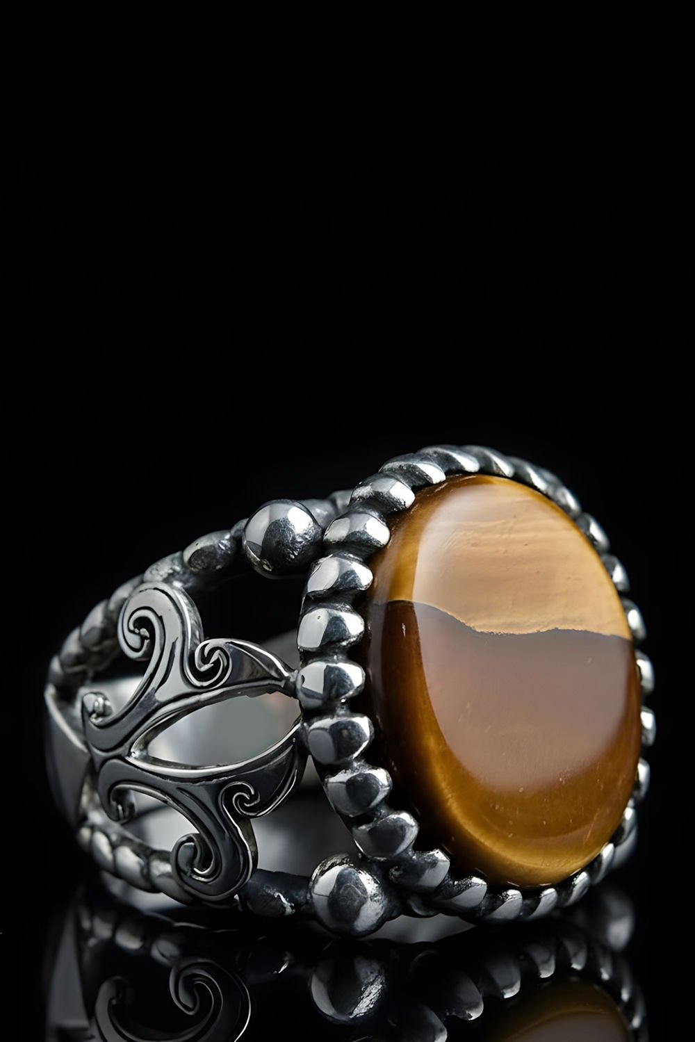 Doğanın en gizemli taşlarından biri, zarafetin sembolü zambak deseniyle buluşuyor! Zambak Desenli El İşinden Kaplangözü Gümüş Yüzük, ışıkla hayat bulan kahve ve altın tonlarındaki hareleri, usta işçilikle parmağınıza taşıyor. 925 ayar gümüş üzerine işlenen bu özel tasarım, hem cesareti hem de asaleti aynı anda simgeliyor.