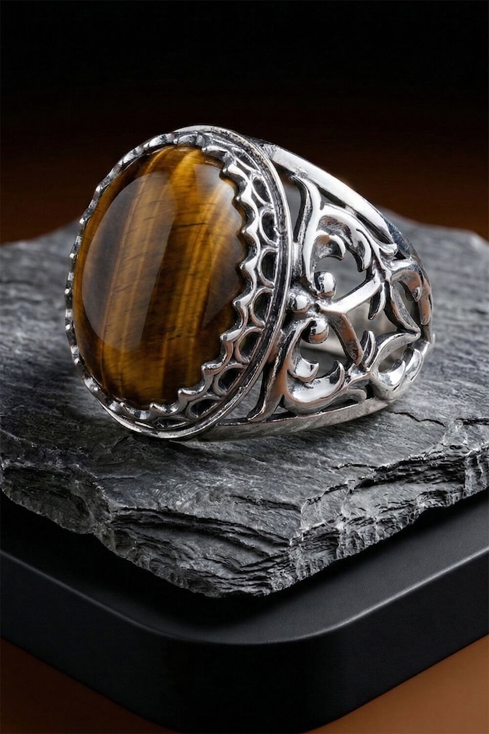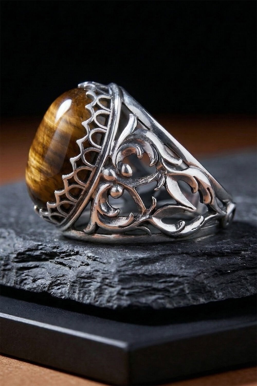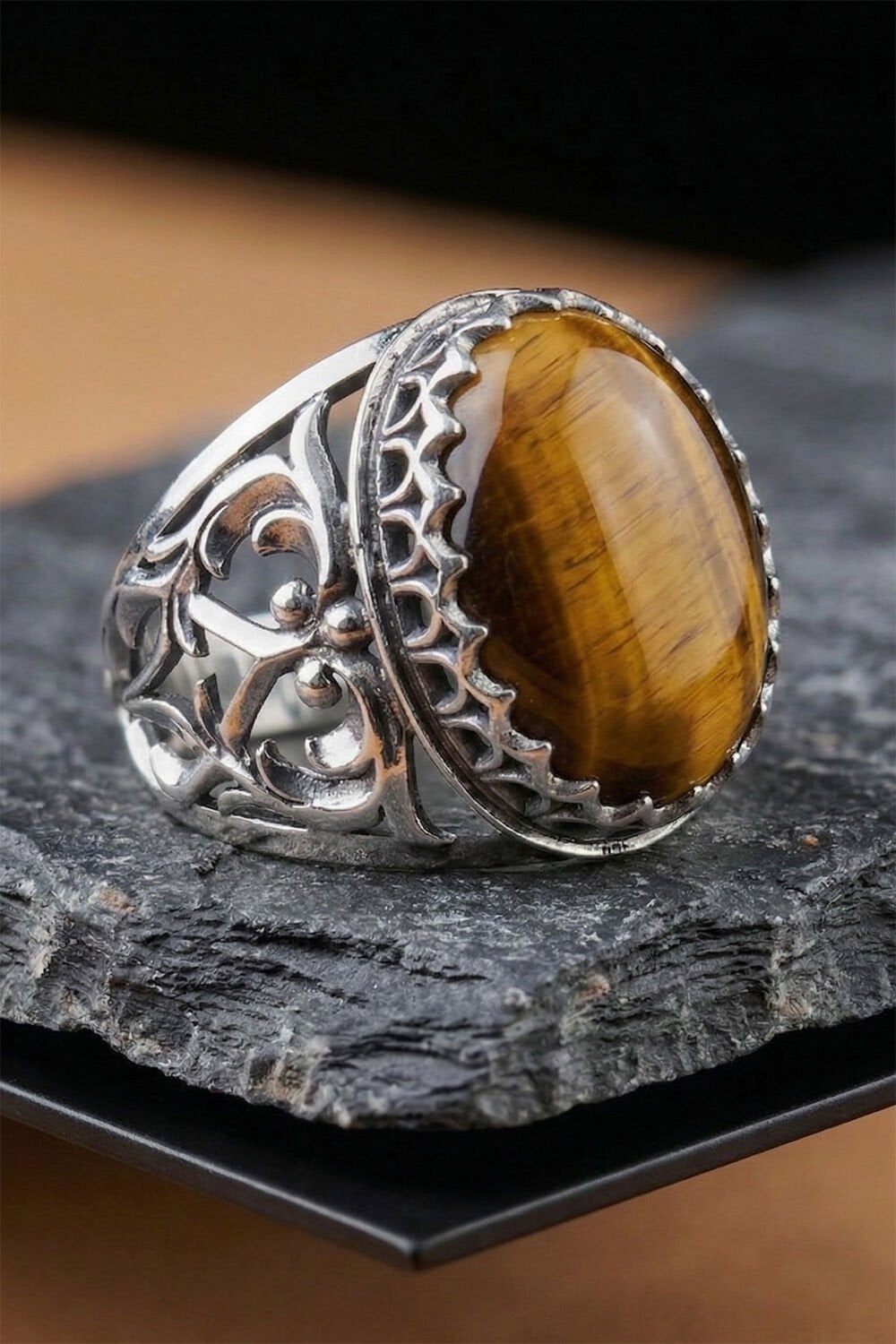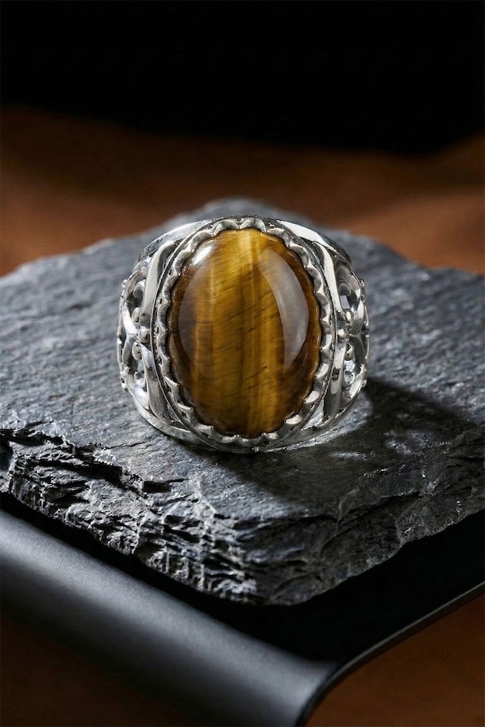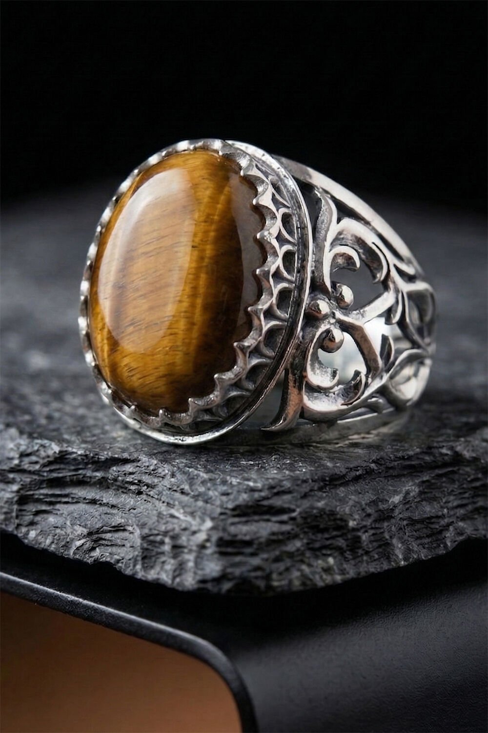 Doğanın en gizemli taşlarından biri olan Kaplangözü, usta ellerin titiz işçiliğiyle buluştu. Bu özel tasarım gümüş erkek yüzük, sadece bir aksesuar değil; tarzınızı tamamlayan güçlü bir simge niteliğindedir. 925 ayar gümüşten tamamen el işçiliği ile üretilen bu model, detaylarındaki sanatsal dokunuşlarla fark yaratmak isteyen erkekler için tasarlandı.