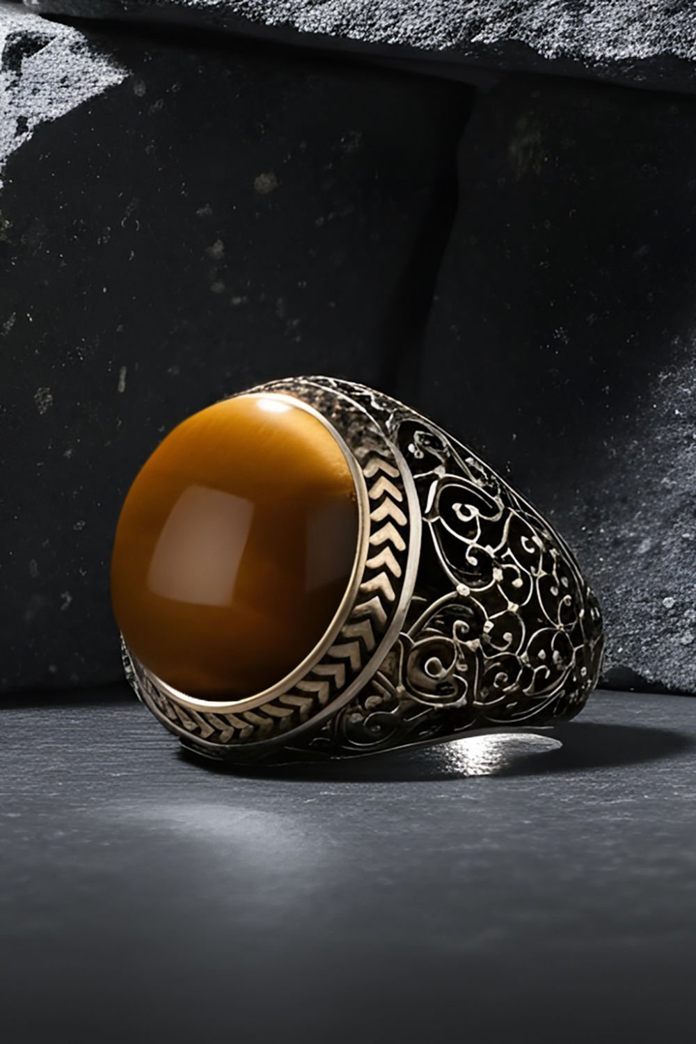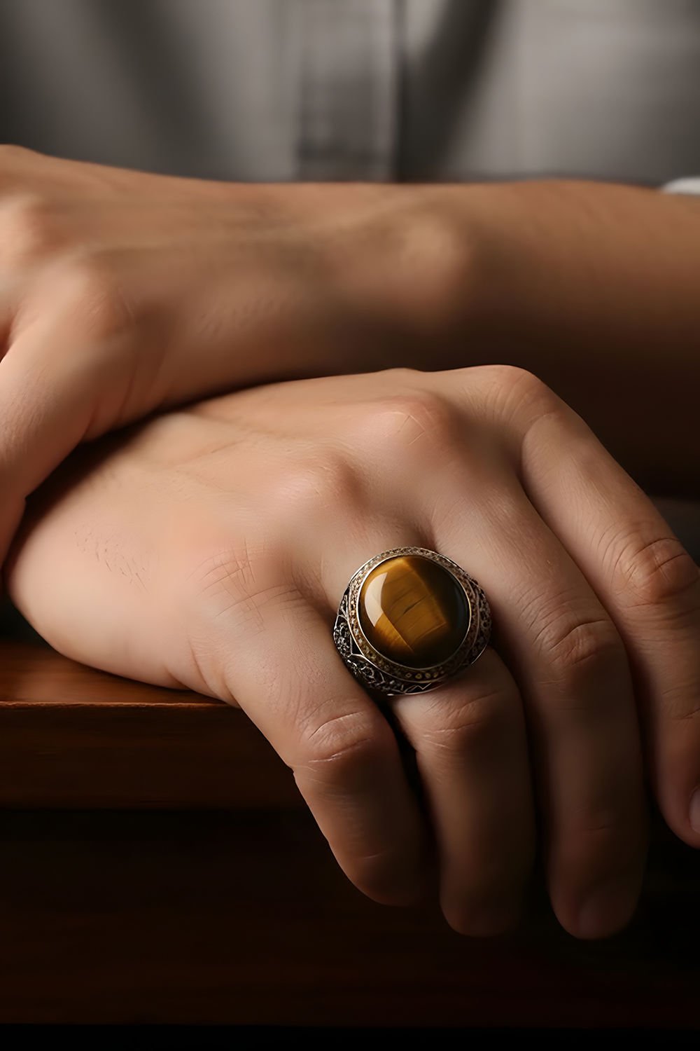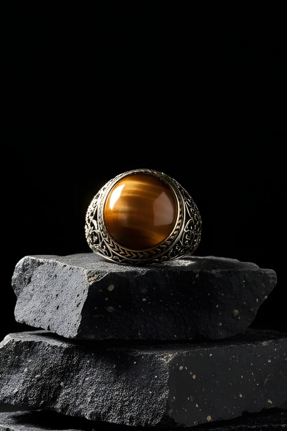 Hakiki ve orijinal doğal taşlar kullandığımız yüzüklerin bu modelinde Kaplangözü taşını kullanıyoruz.