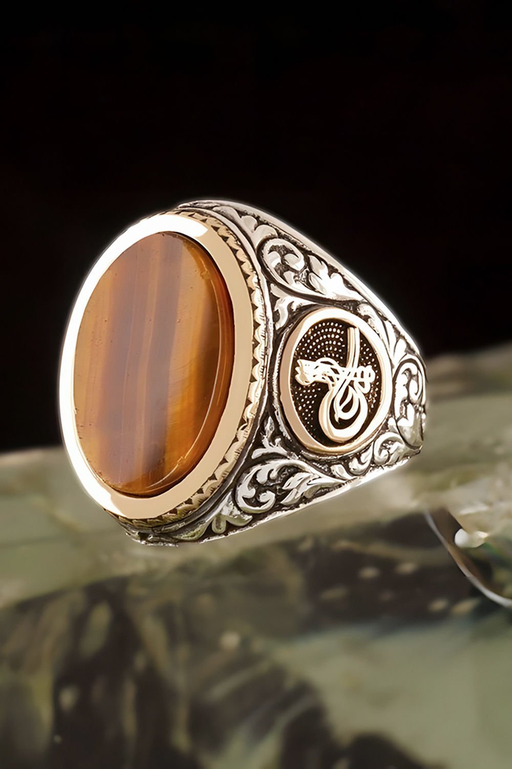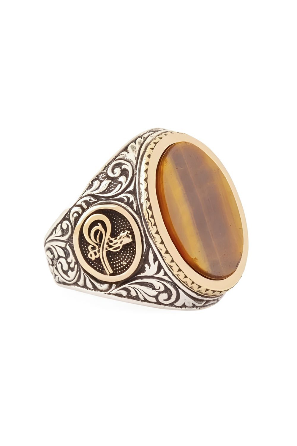 Kaplangözü Taşlı Tuğra Desenli Gümüş Yüzük |