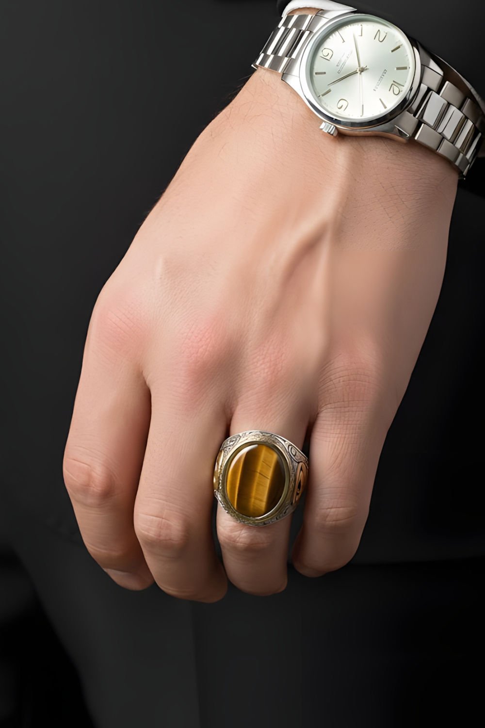 Hakiki ve orijinal doğal taşlar kullandığımız yüzüklerin bu modelinde Kaplangözü taşını kullanıyoruz.