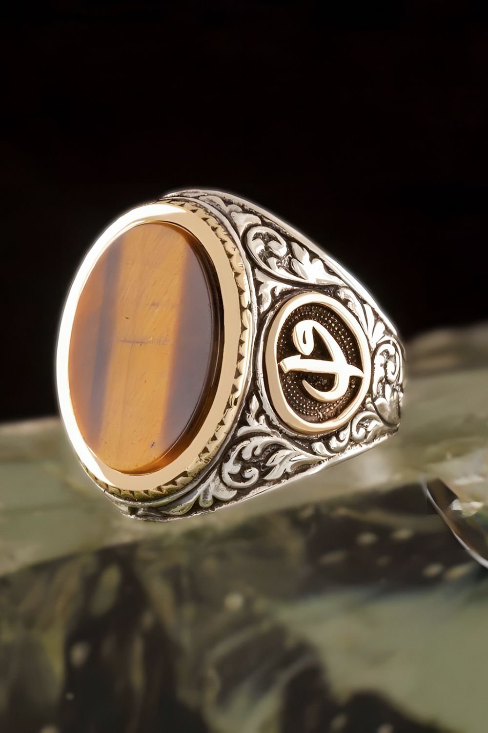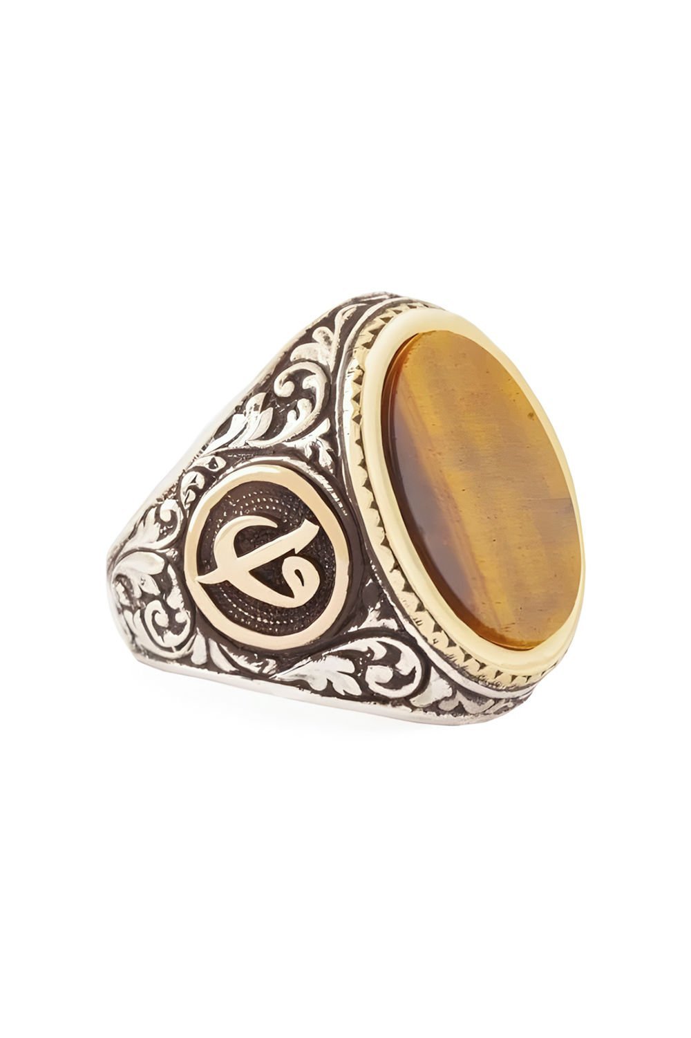 Kaplangözü Taşlı Vav Elif Desenli Gümüş Yüzük |