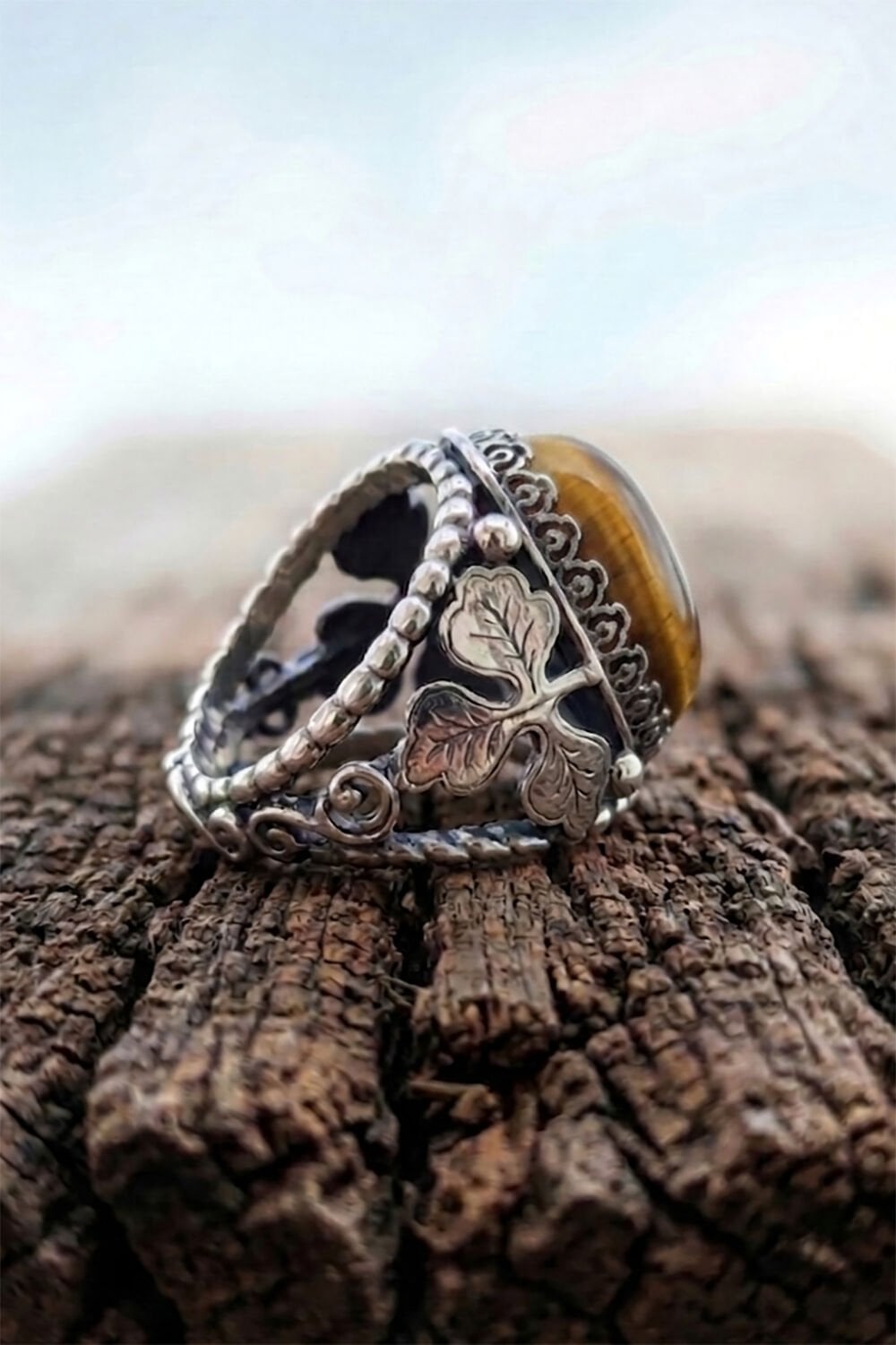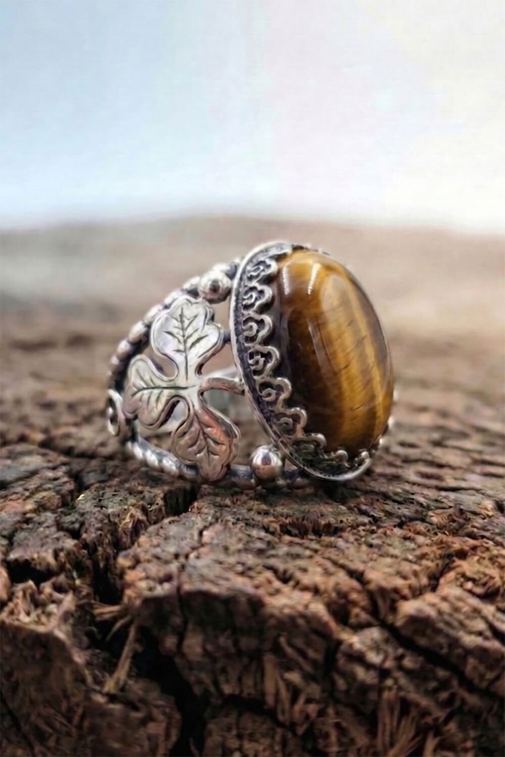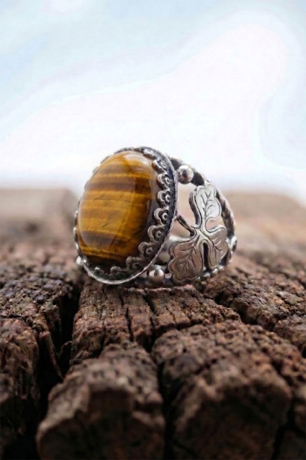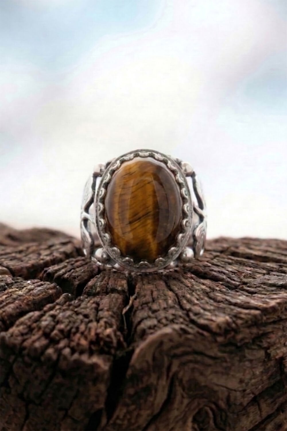 Doğal Kaplangözü Taşı: 15 x 20 mm boyutundaki büyük ve etkileyici kaplangözü taşı, odaklanmayı artırıcı ve negatif enerjiden koruyucu özellikleriyle bilinir. Taşın kendine has hareleri, her yüzüğü eşsiz kılar.
