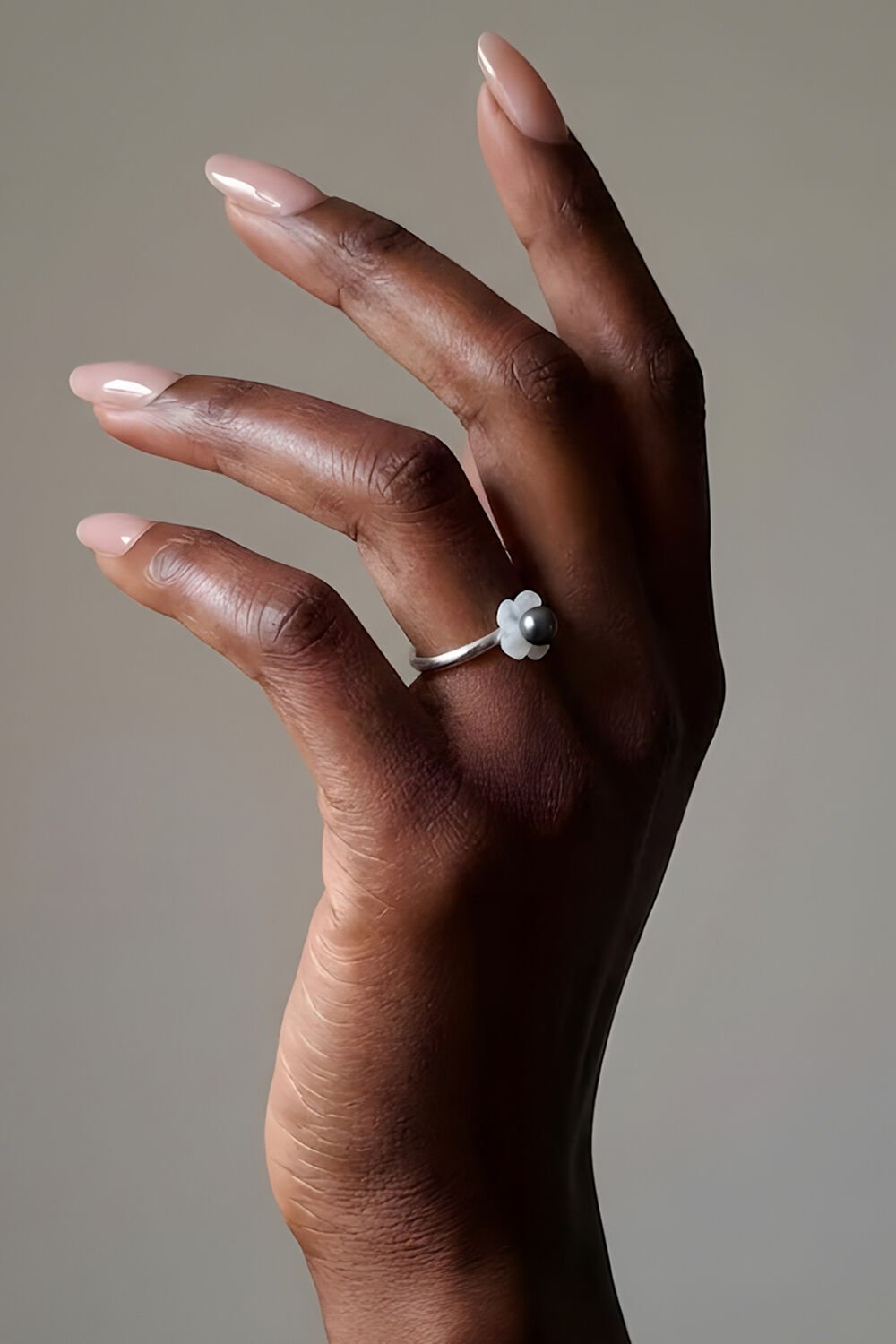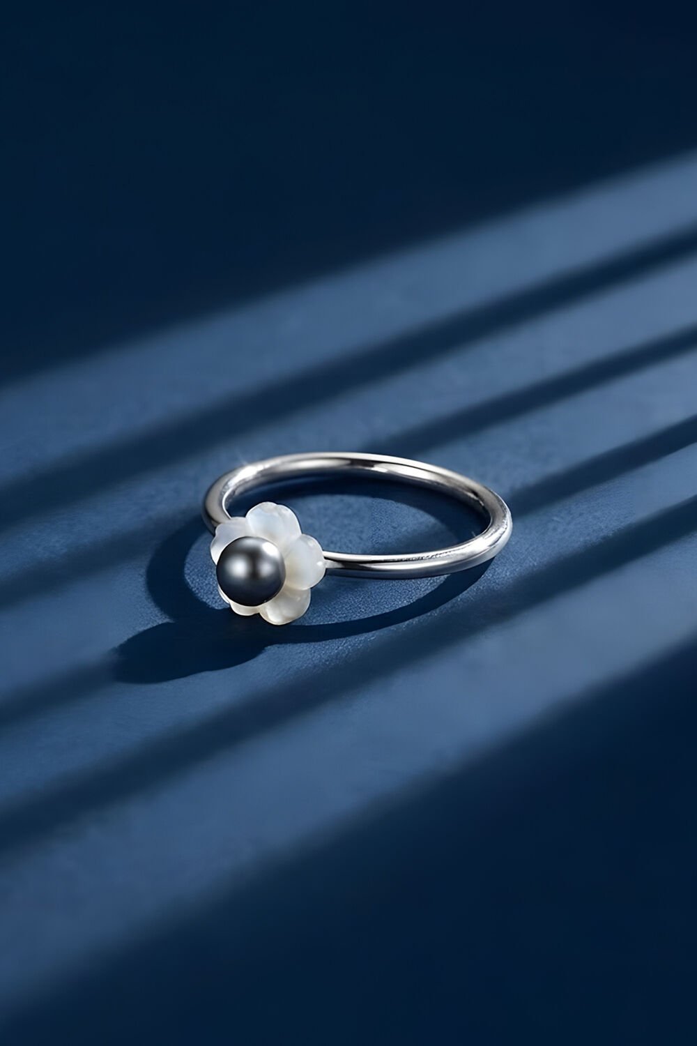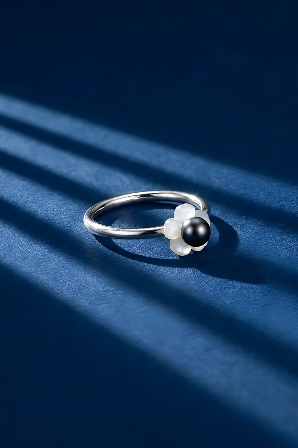 Kardelen Model Sedef Ve Siyah İnci Taşlı Minimal Kadın Yüzük