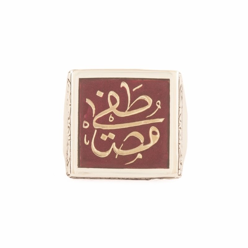 Sade ve minimalist bir tasarımla dizayn ettiğimiz bu ürünümüzde Hattamızın kişiye özel hazırladığı Kaligrafisini 925 ayar el işi gümüş yüzüğümüzle birleştirip siz müşterilerimizin kullanımına sunduk.