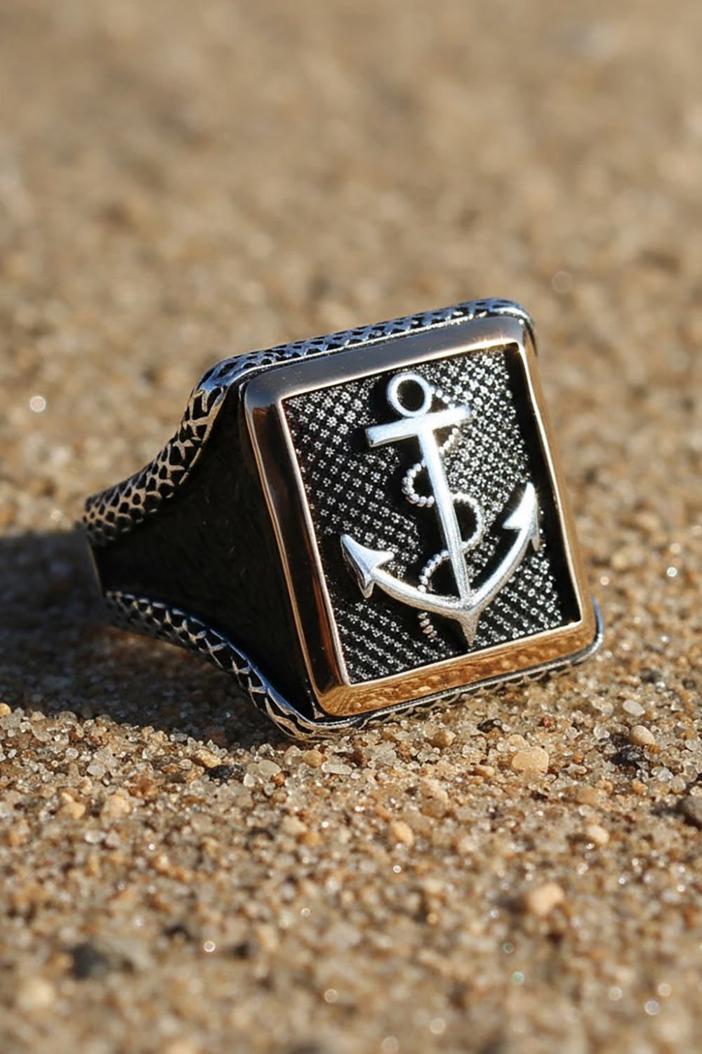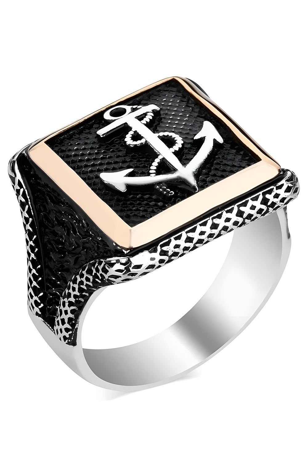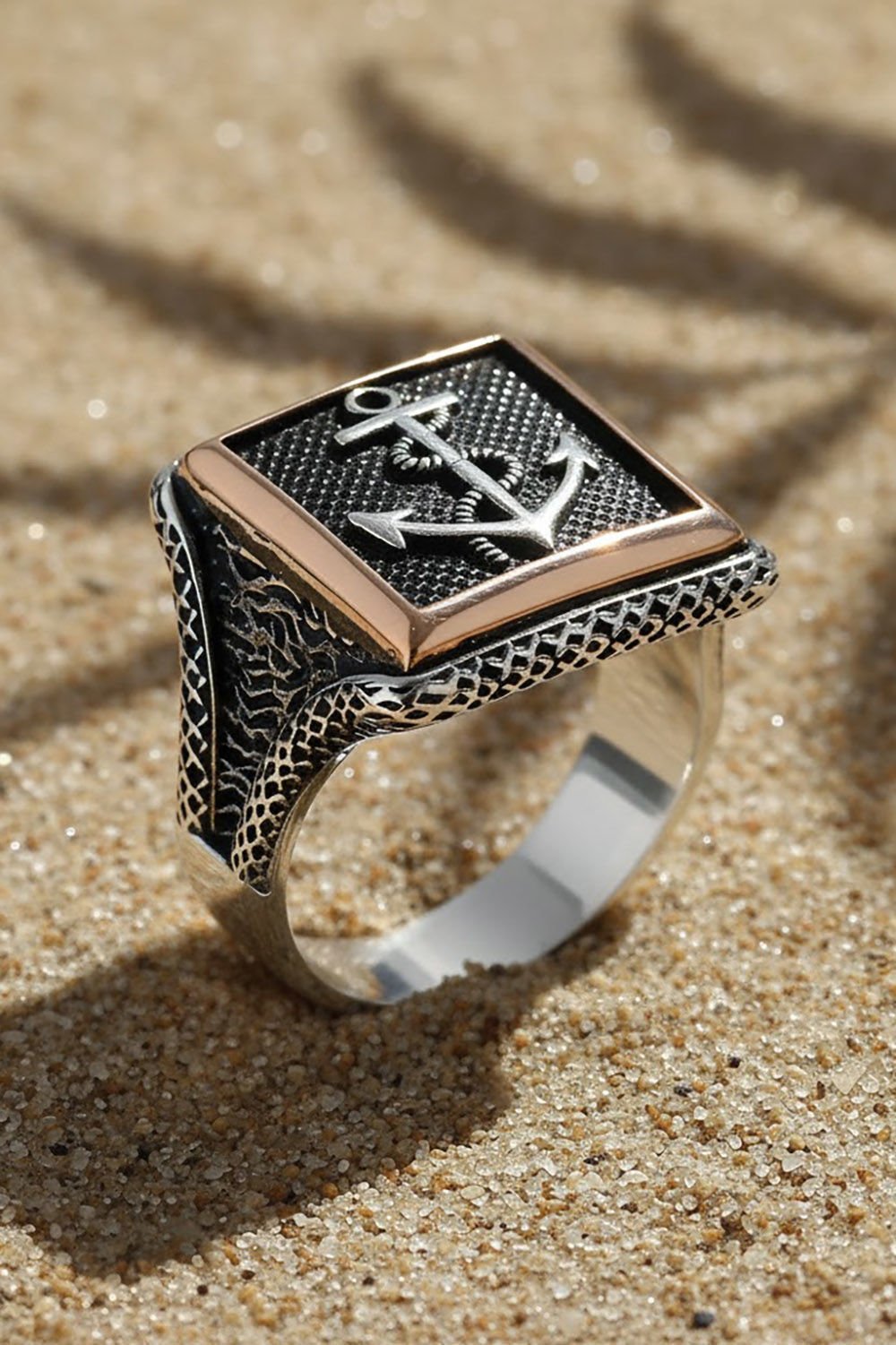 Kare Model Çapa Sembollü Gümüş Yüzük