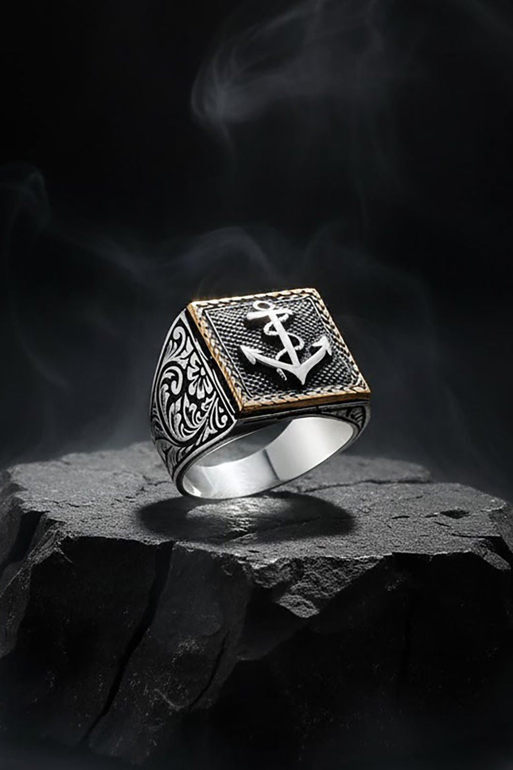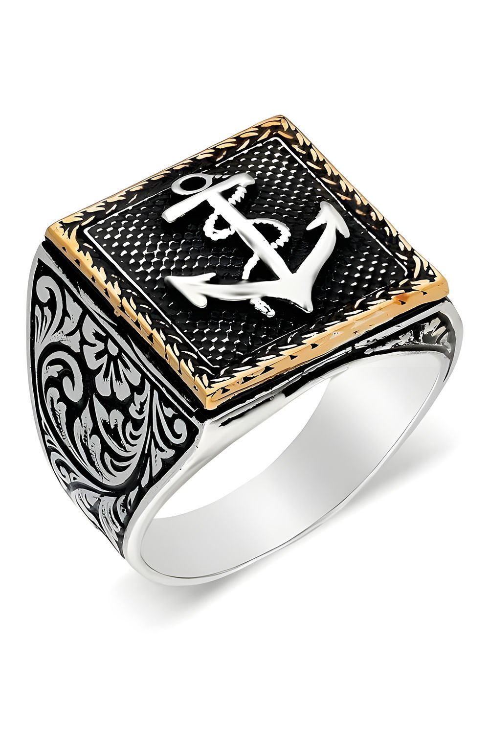 Kare Model Kalem İşlemeli Çapa Desenli Yüzük