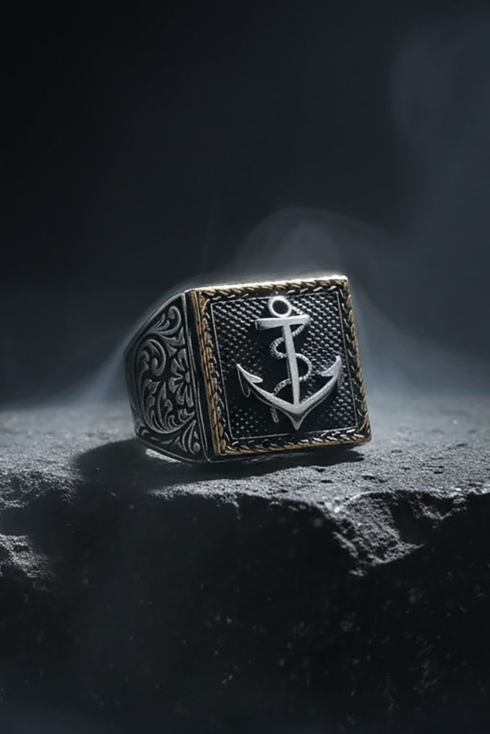Kare Model Kalem İşlemeli Çapa Desenli Yüzük |
