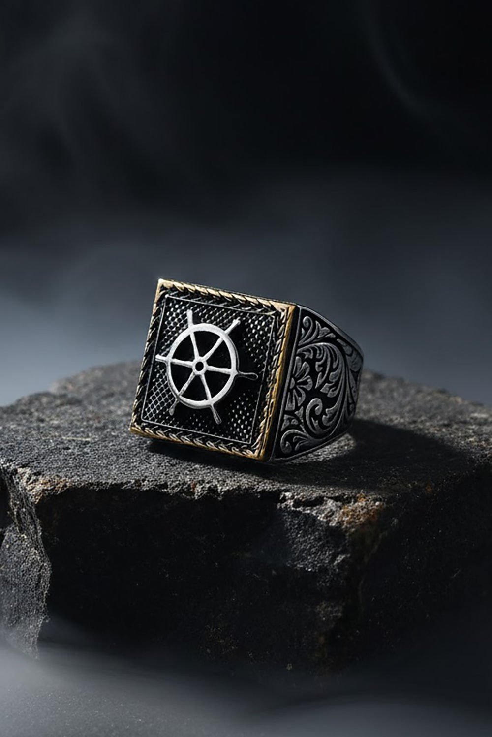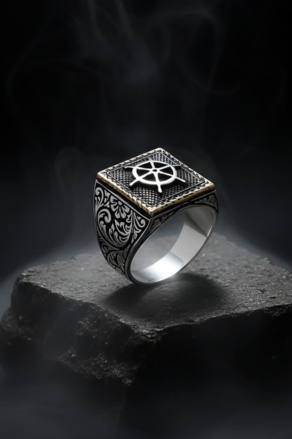 Yüzük üzerinde Gemi Dümeni bulunmaktadır.
