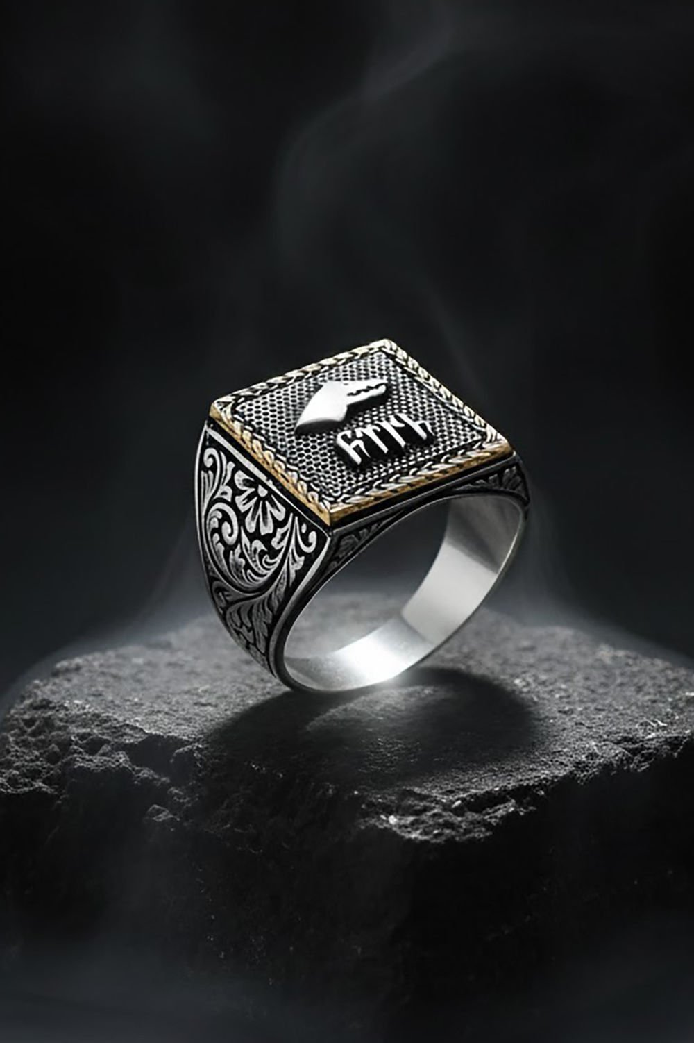 Kare Model Kalem İşlemeli Göktürk Yüzük |