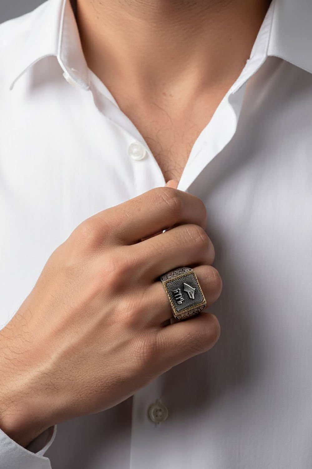 925 ayar gümüş ve kendi işçiliğimizle hazırladığımız bu modelimizde taşsız bir erkek yüzüğü tasarladık.