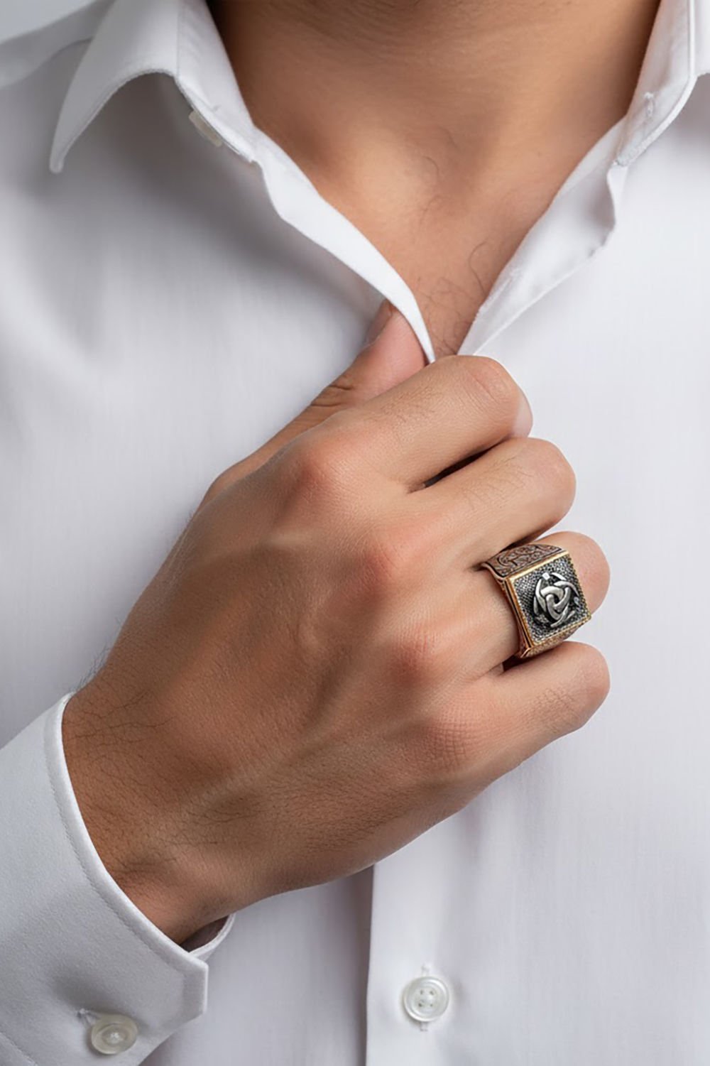 925 ayar gümüş ve kendi işçiliğimizle hazırladığımız bu modelimizde taşsız bir erkek yüzüğü tasarladık.