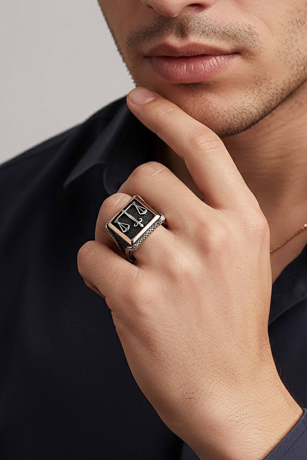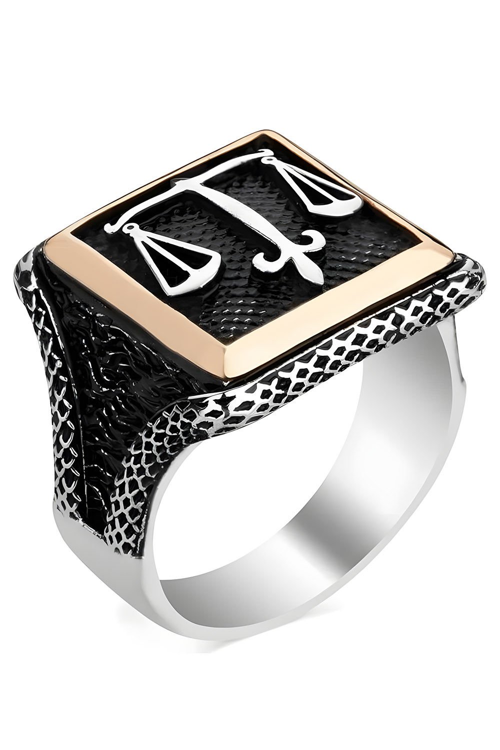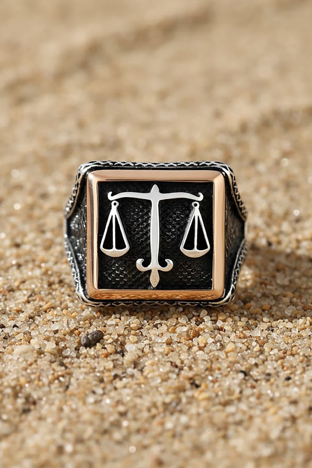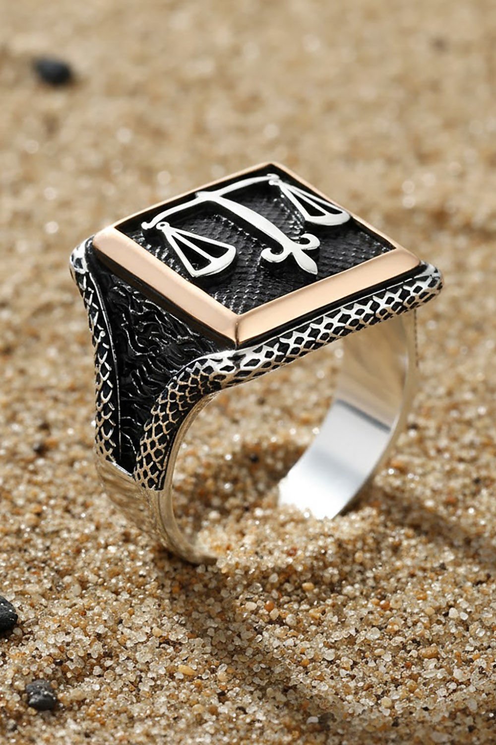 Kare Model Terazi Sembollü Gümüş Yüzük |