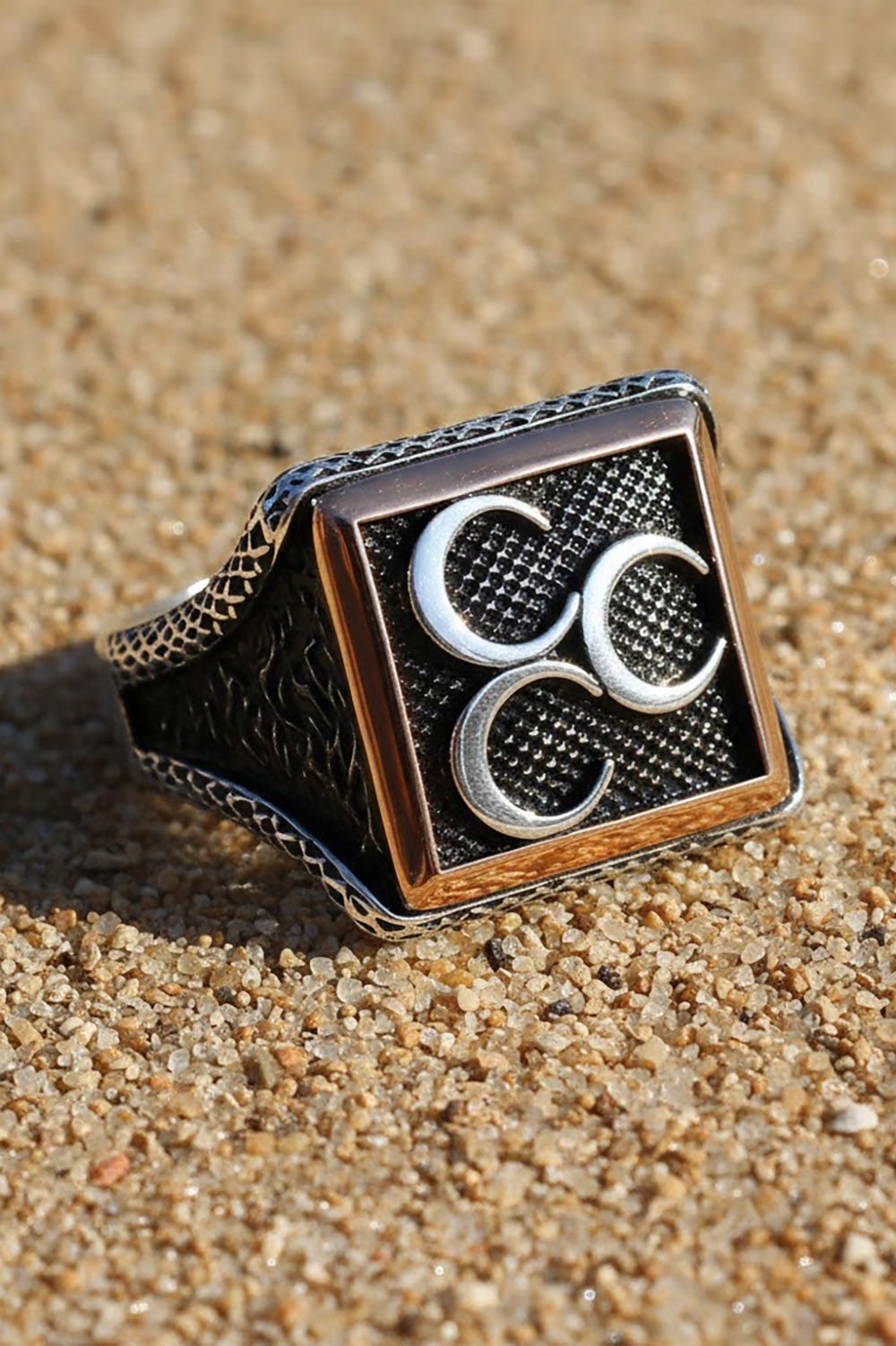 Kare Model Üç Hilâlli Gümüş Yüzük |