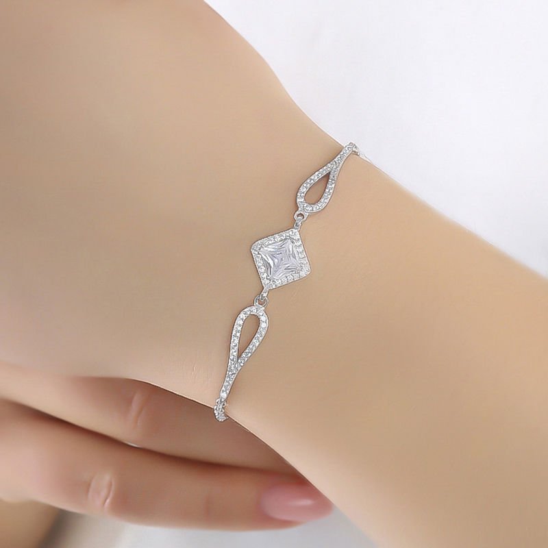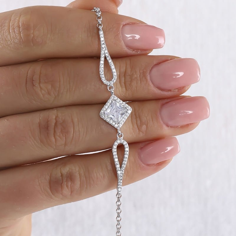 Kare Zirkon Taşlı Zincirli Gümüş Bileklik |