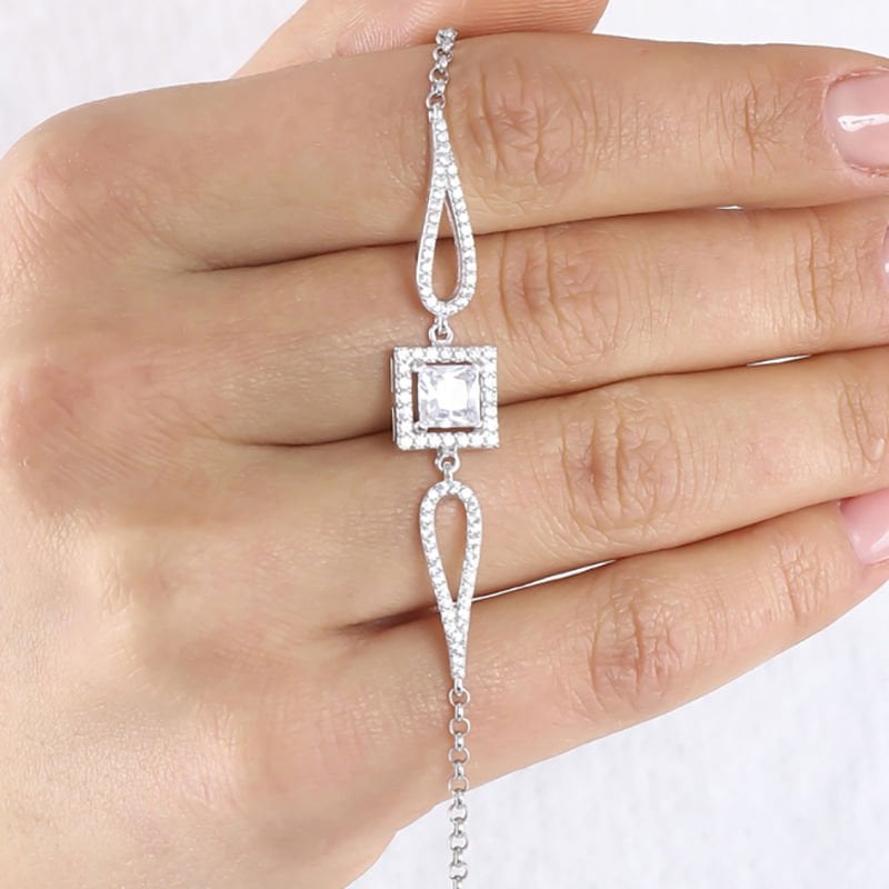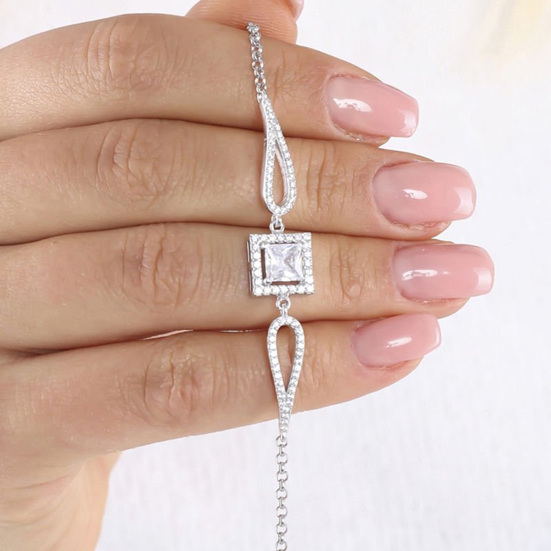 Kare Zirkon Taşlı Zincirli Gümüş Bileklik |