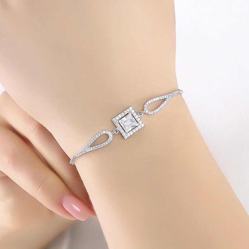 Kare Zirkon Taşlı Zincirli Gümüş Bileklik