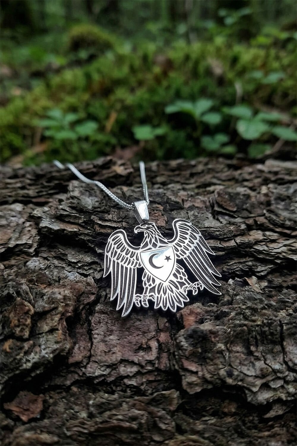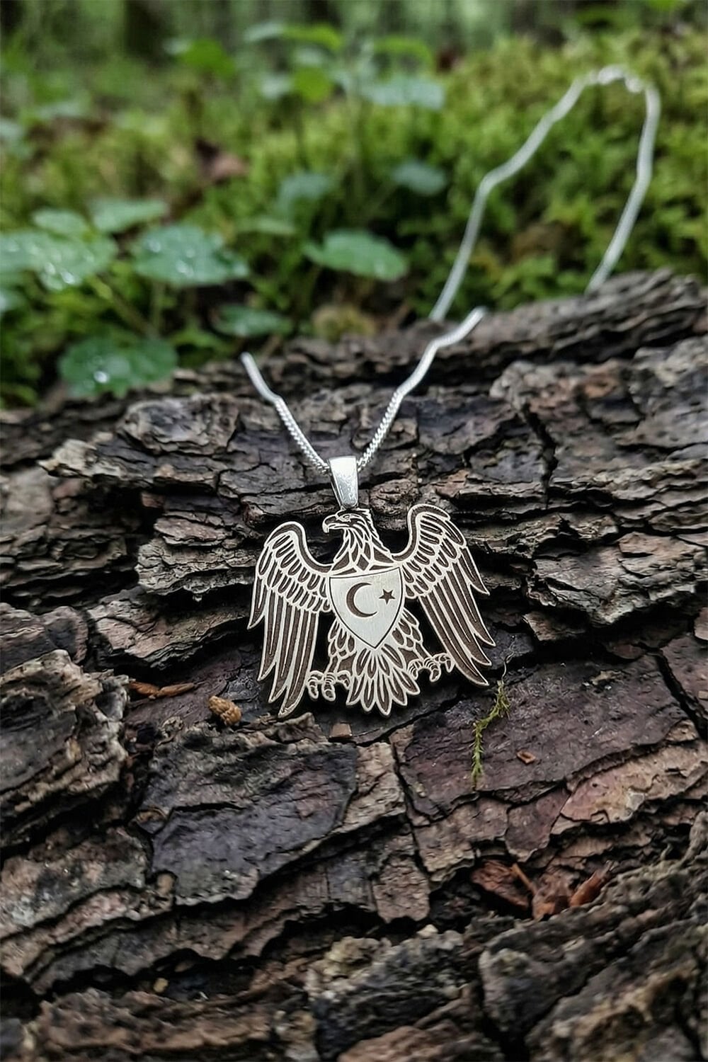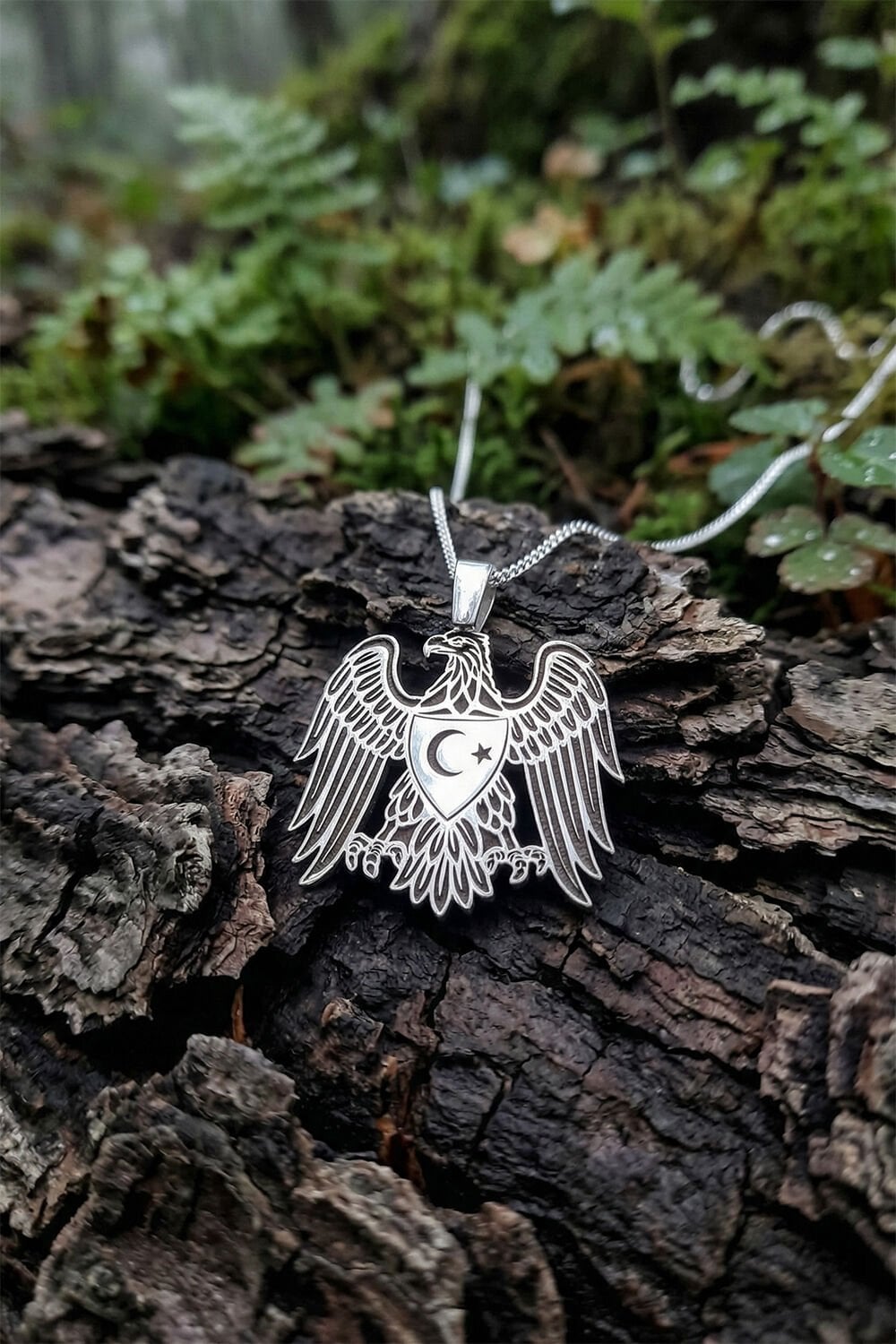 925 Ayar Gümüş Kartal Model Ay Yıldız İşlemeli Unisex Kolye