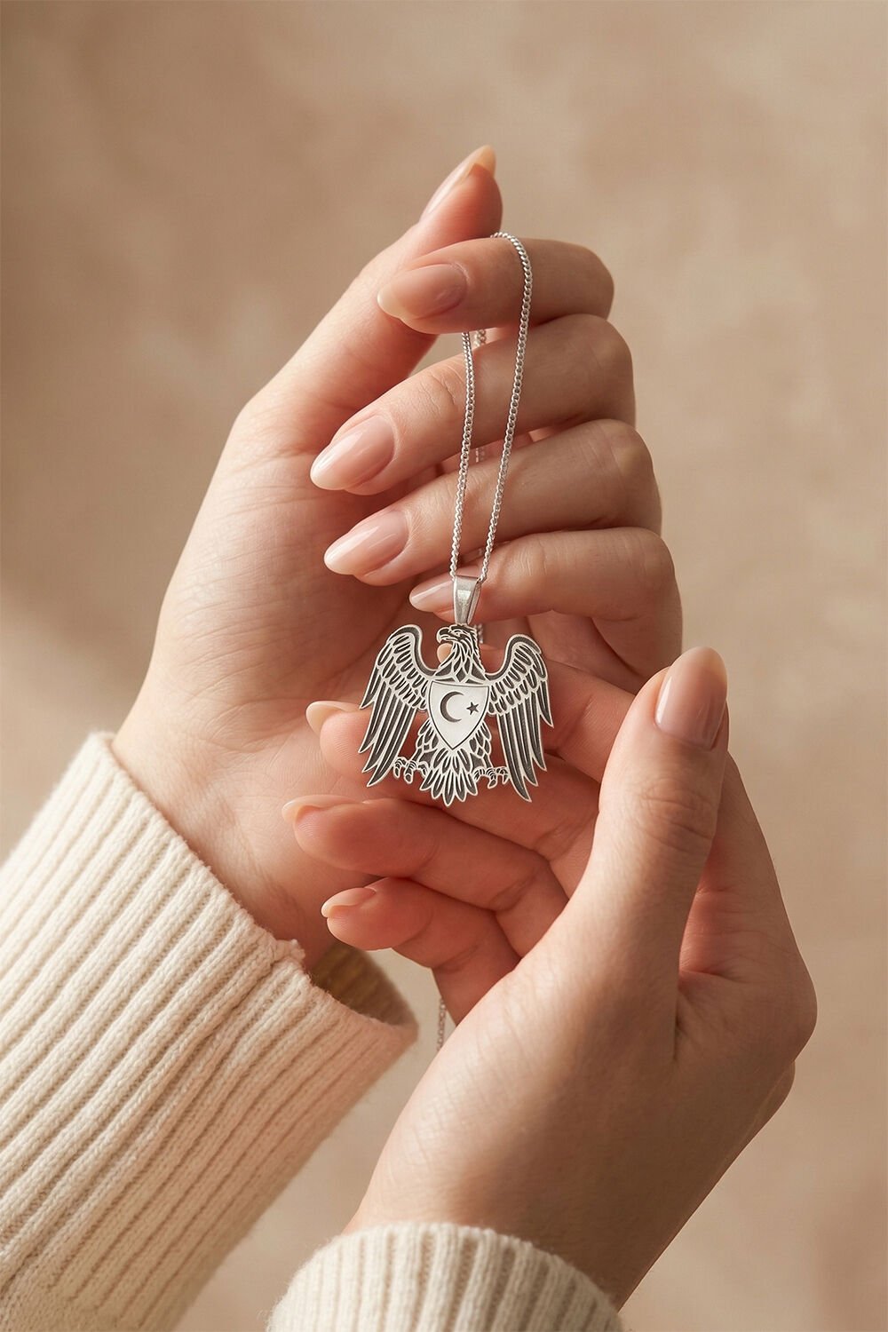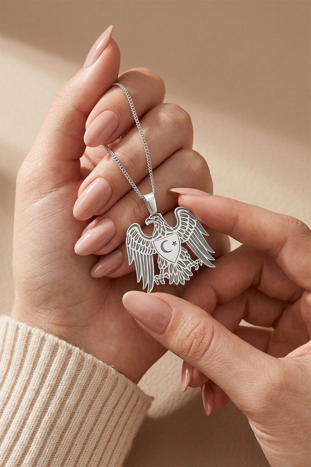 Neden Bu Kolyeyi Tercih Etmelisiniz? Bu kolye sadece bir takı değil; özgürlüğün, gücün ve vatan sevgisinin zarif bir dışa vurumudur. 925 ayar gerçek gümüşten üretilen kolye ucu, ince işçiliğiyle her detayında kaliteyi hissettirir. Unisex tasarımı sayesinde hem kadınların hem de erkeklerin kombinlerine kusursuz bir uyum sağlar.