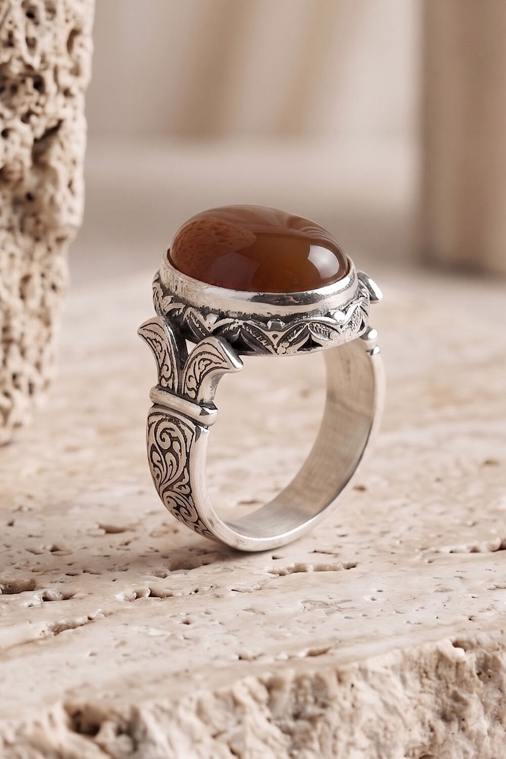 Kullanılan Taş: Doğal Akik (Oval Kesim)