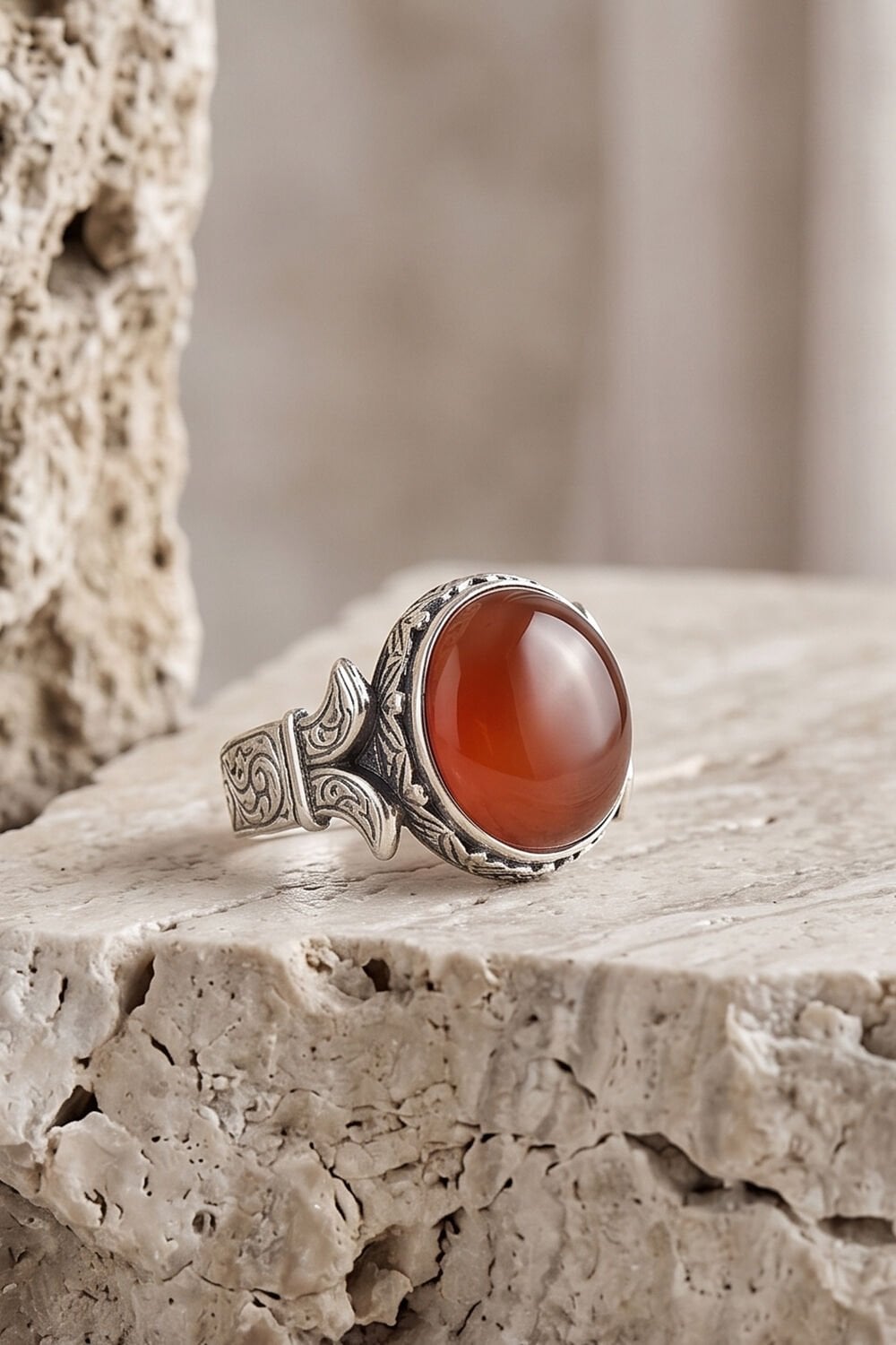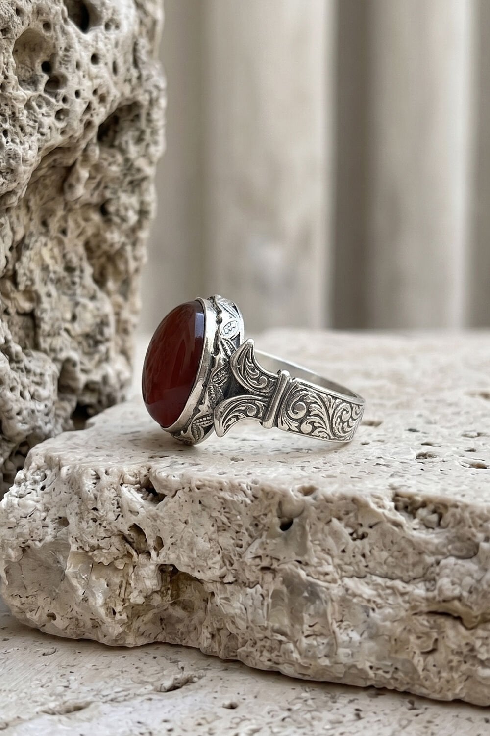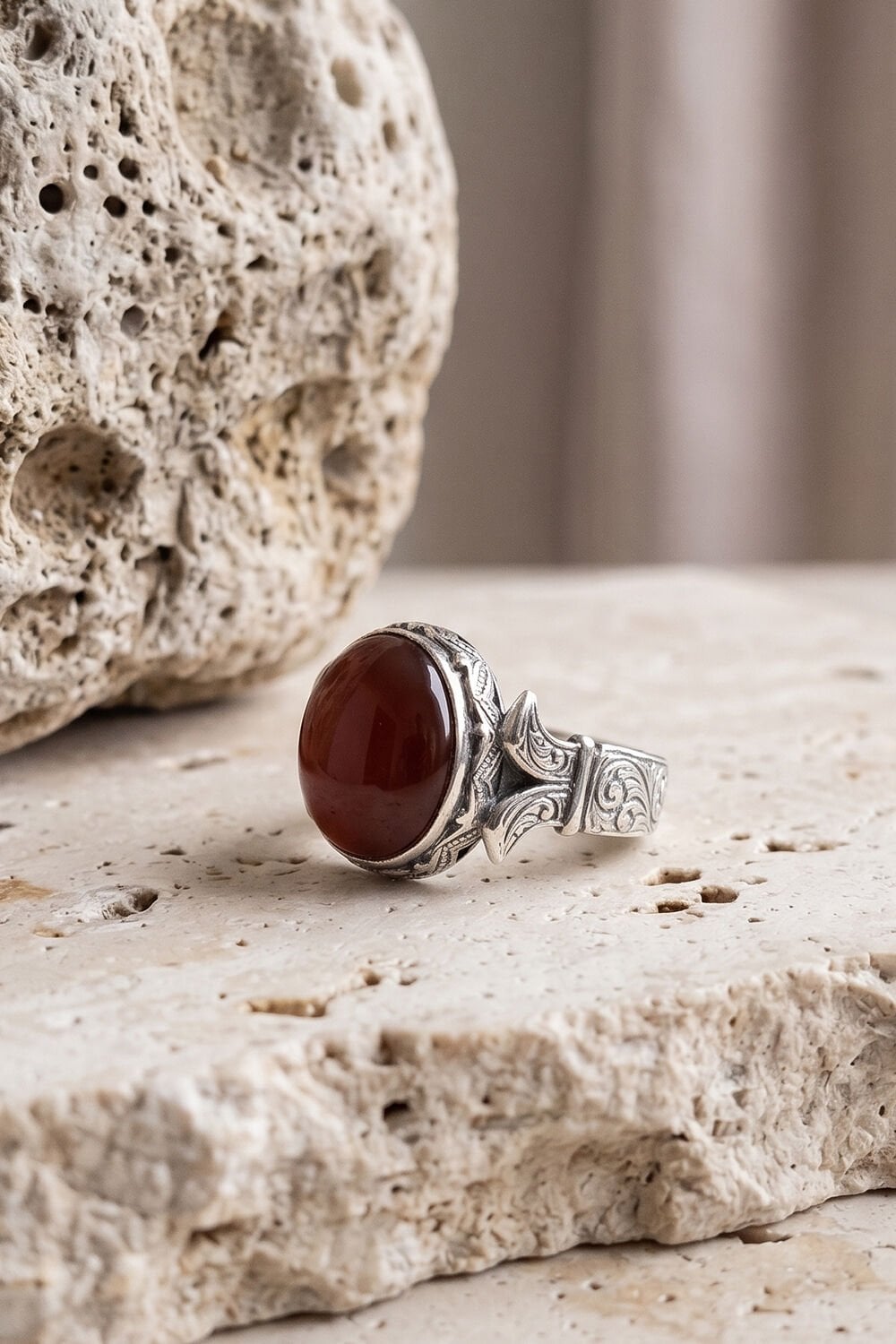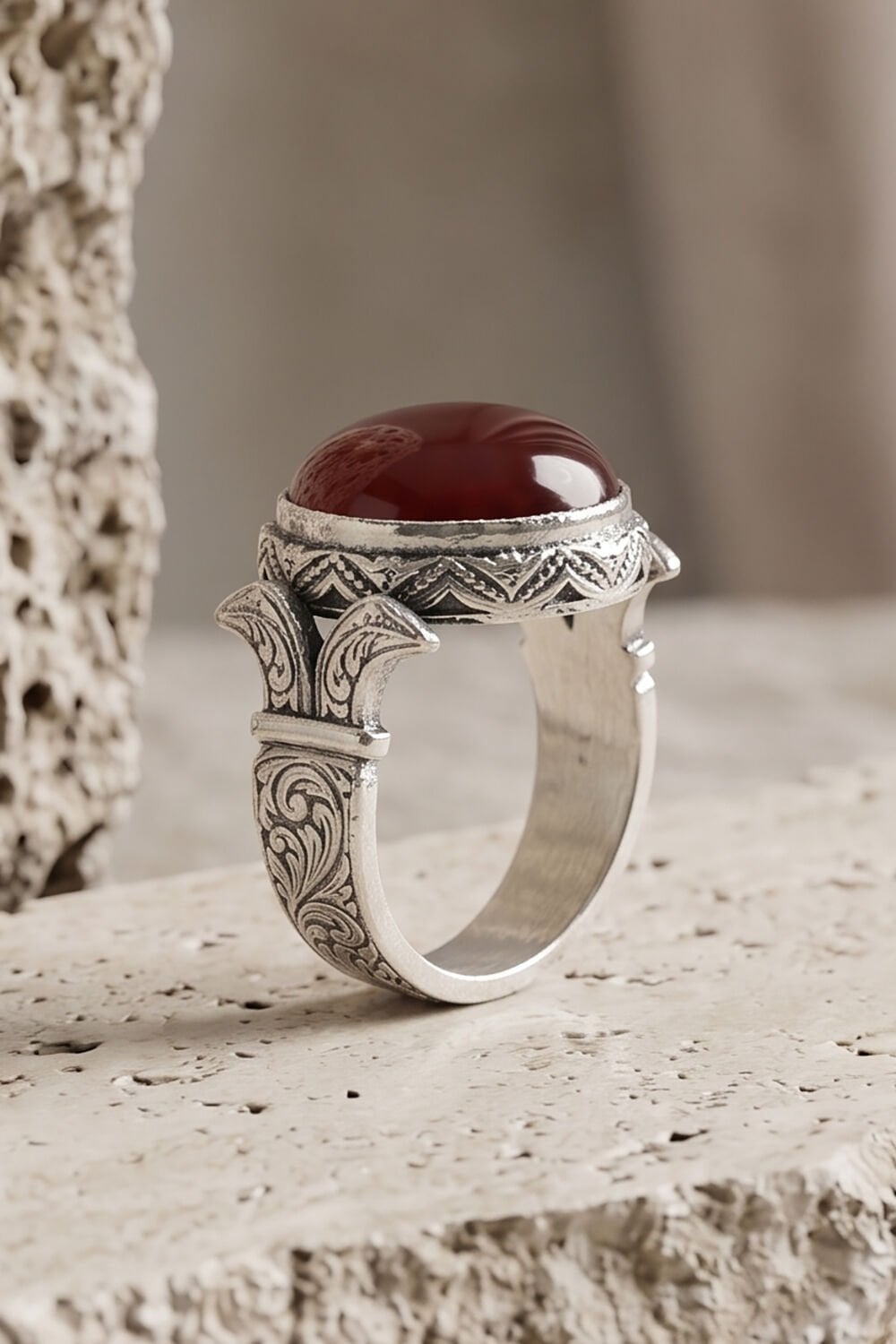 Geleneksel Sanatın Modern Dokunuşu: Katre Model Akik Taşlı Gümüş Yüzük