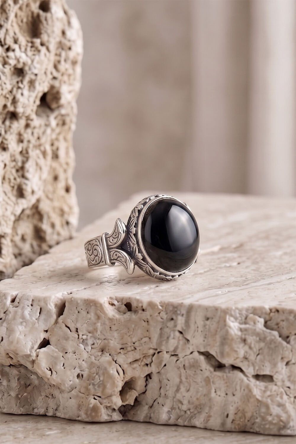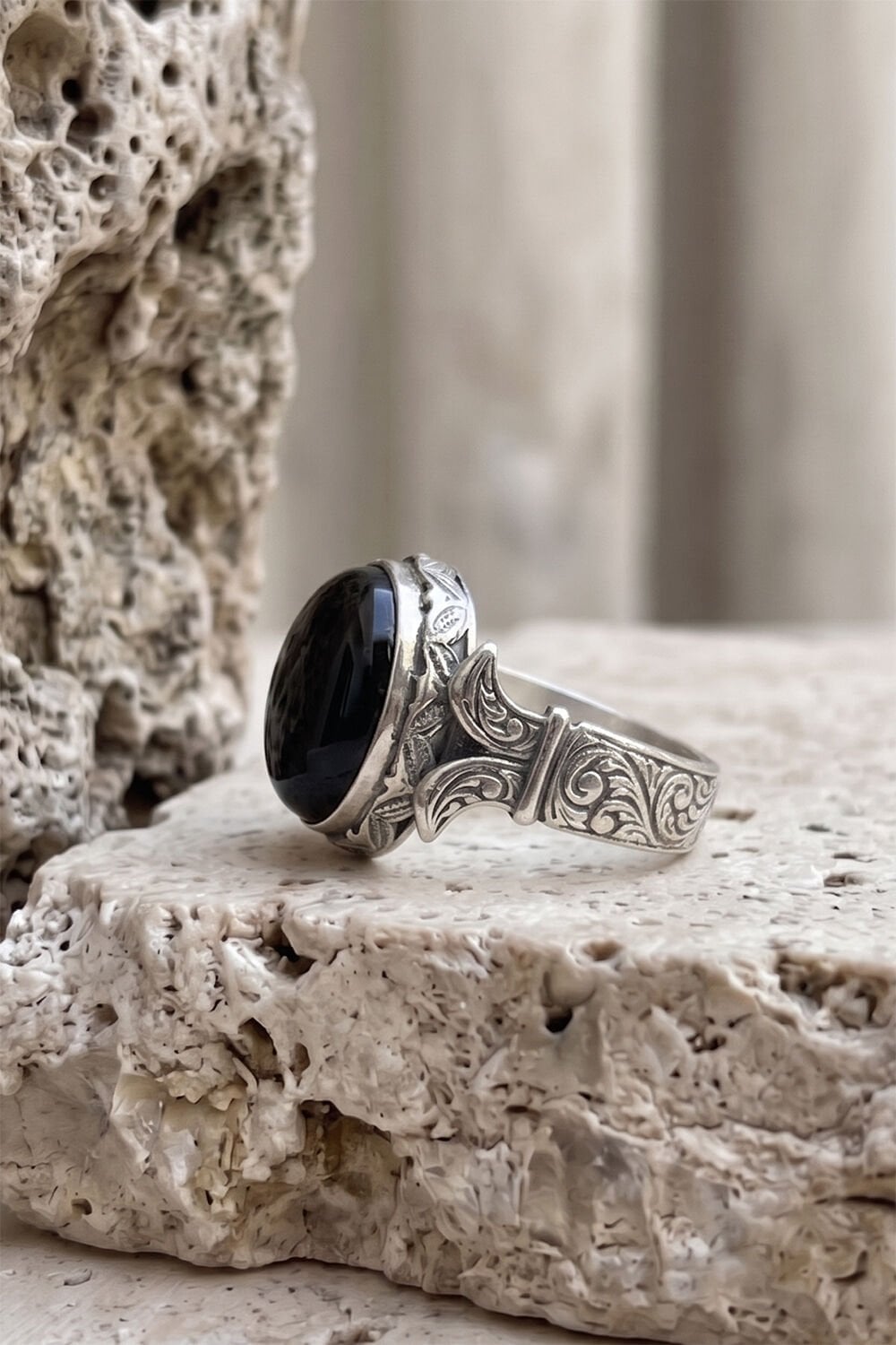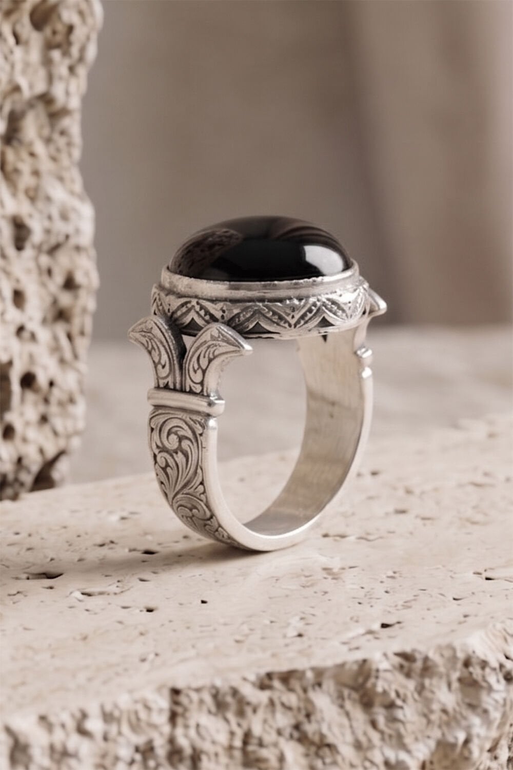 Katre Model Oniks Taşlı 925 Ayar Gümüş Erkek Yüzük - Özel El İşçiliği