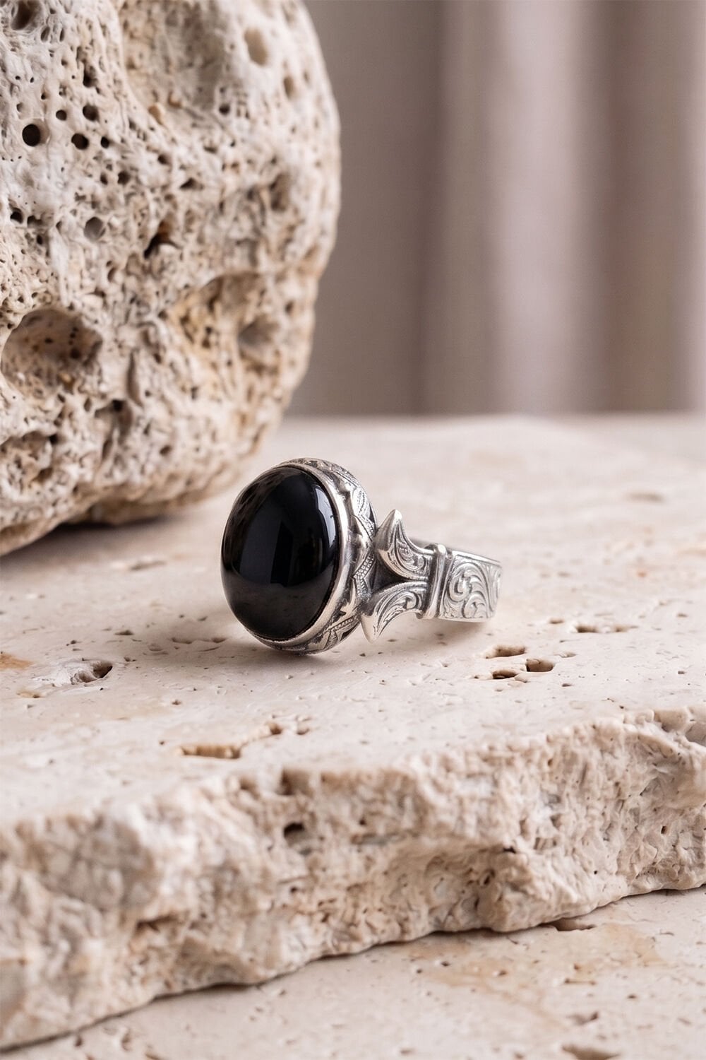 Katre Model Oniks Taşlı Gümüş Erkek Yüzük |