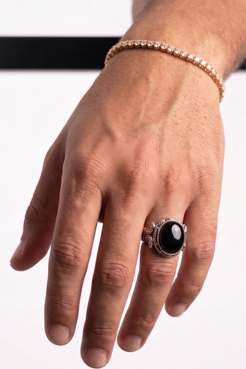 Oniks Taşının Gücü: 16x16 mm ölçülerindeki fasetli/bombeli oniks taşı, siyahın en asil halini sunarken; özgüven ve denge enerjisiyle gün boyu size eşlik eder.