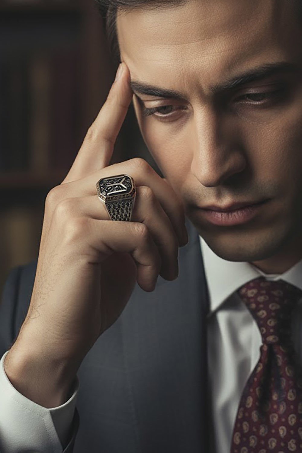 Yüzük, kenar kısımlarındaki işlemeleri ve minimal tasarımı ile dikkat çekmektedir.