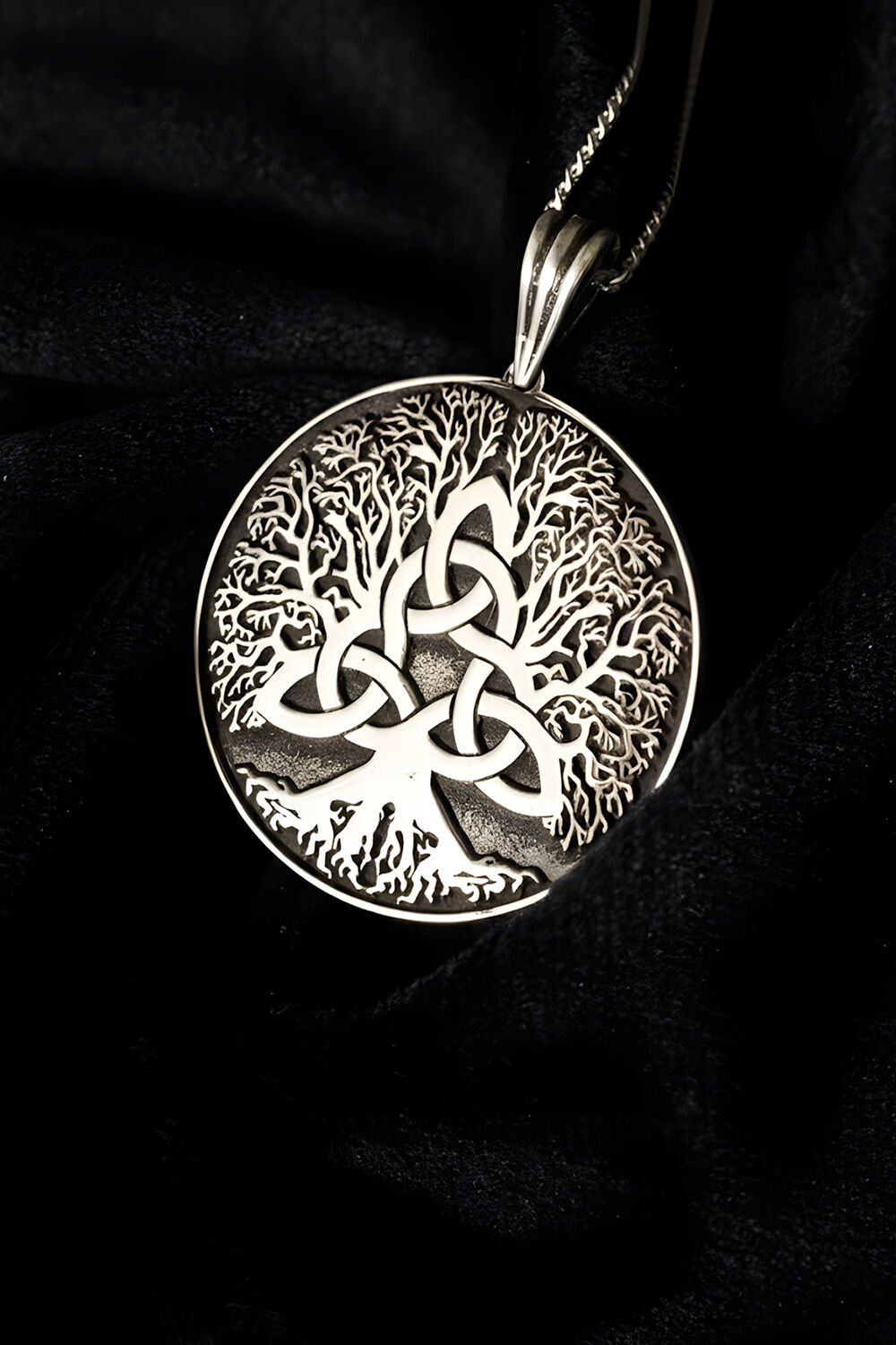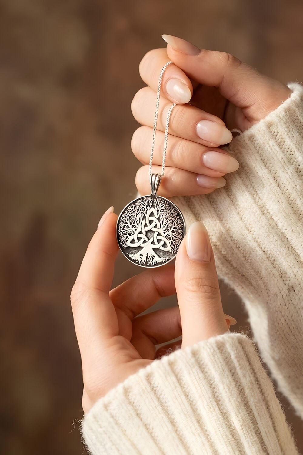 925 Ayar Gümüş Kelt Hayat Ağacı Unisex Kolye – Özel Tasarım Zincirli