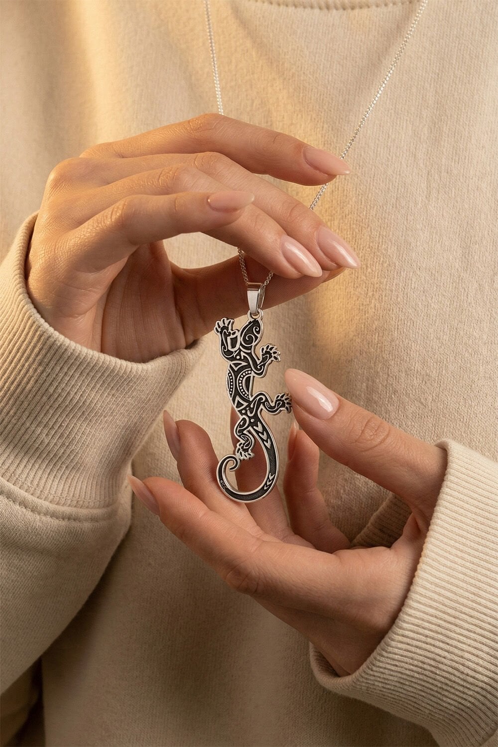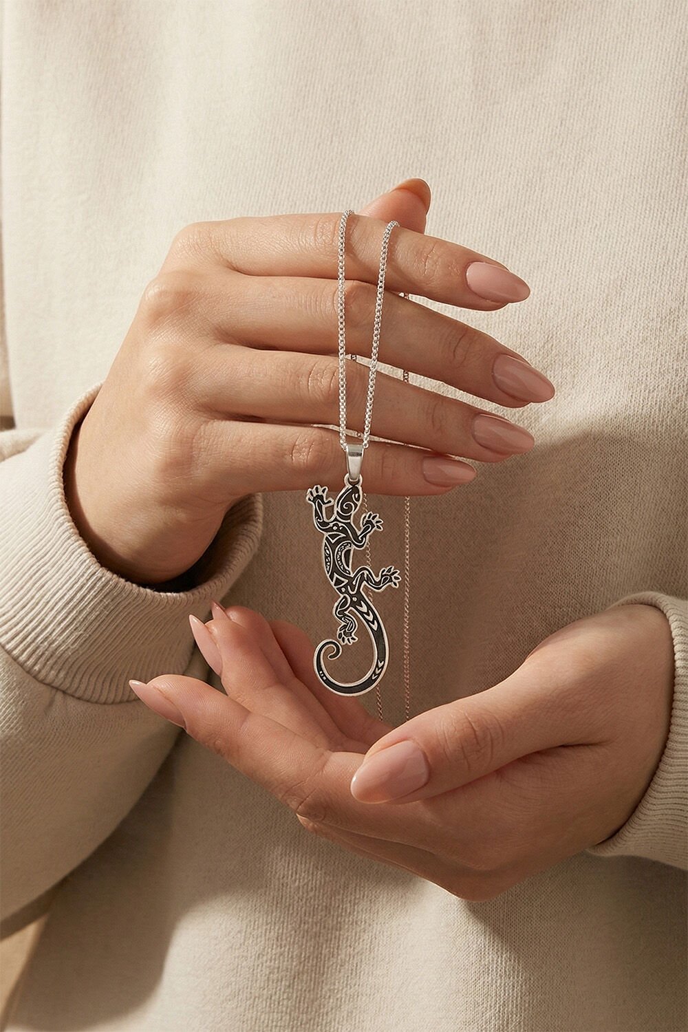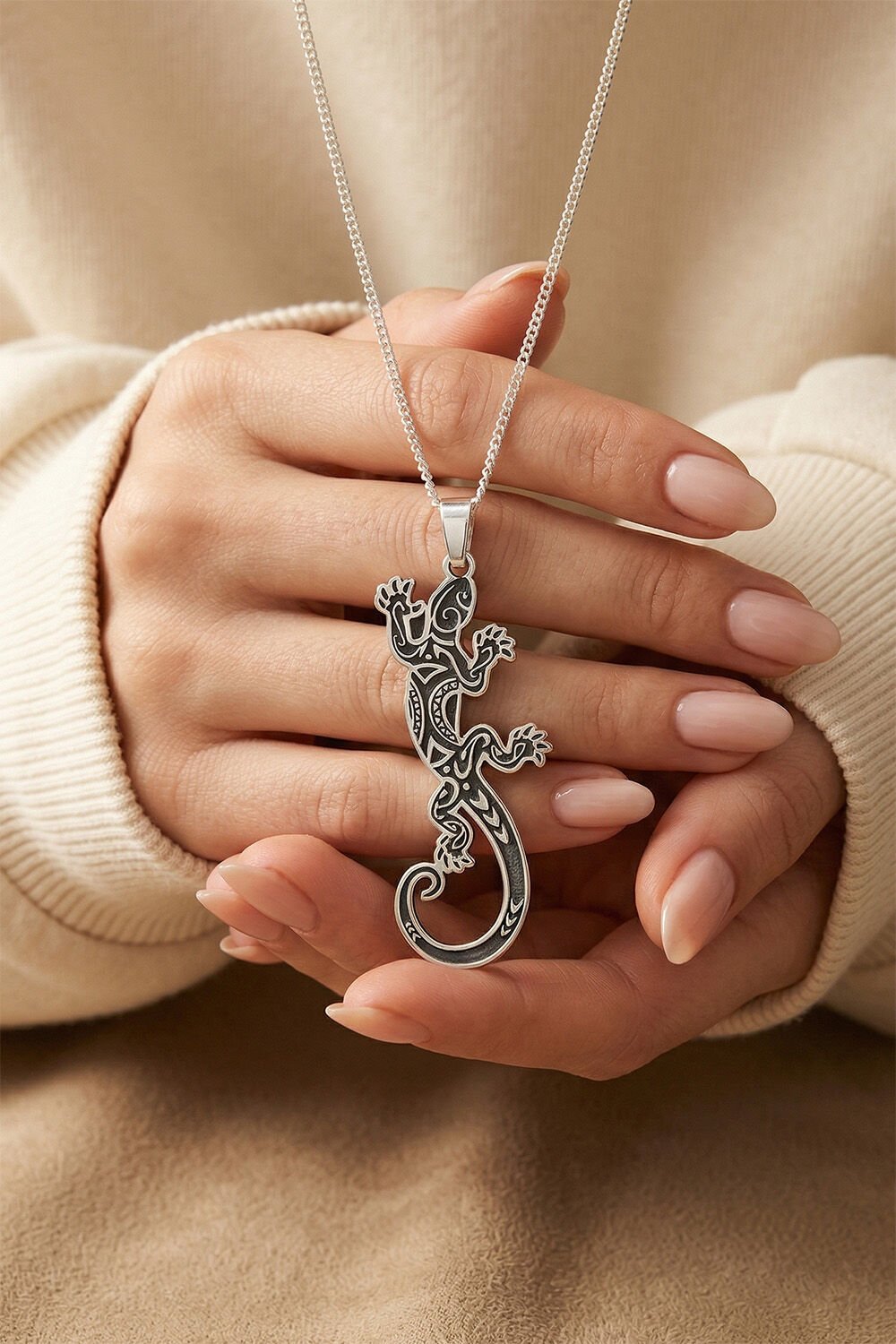 925 Ayar Gümüş Kertenkele Model Unisex Kolye: Doğanın Enerjisi ve Tribal Şıklık